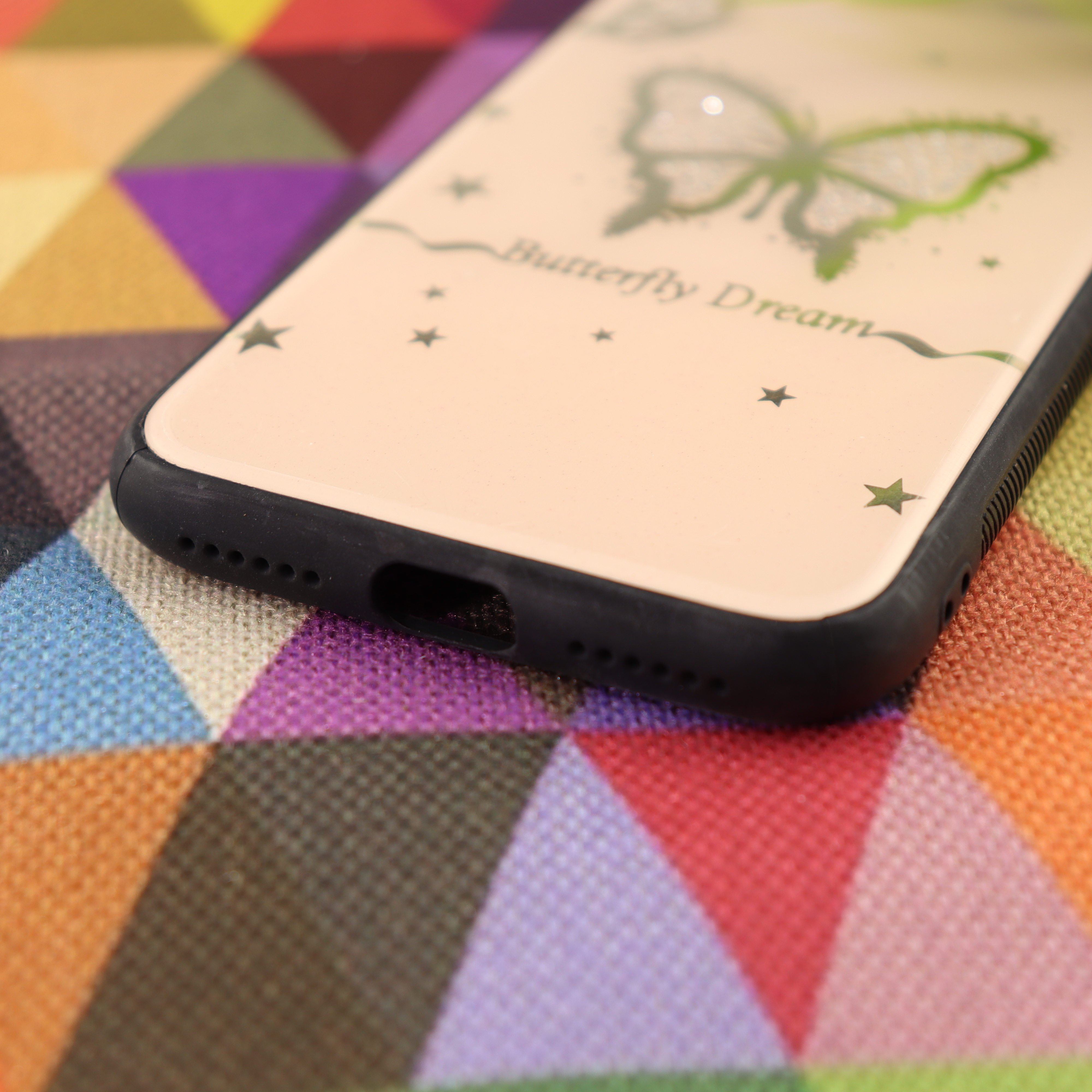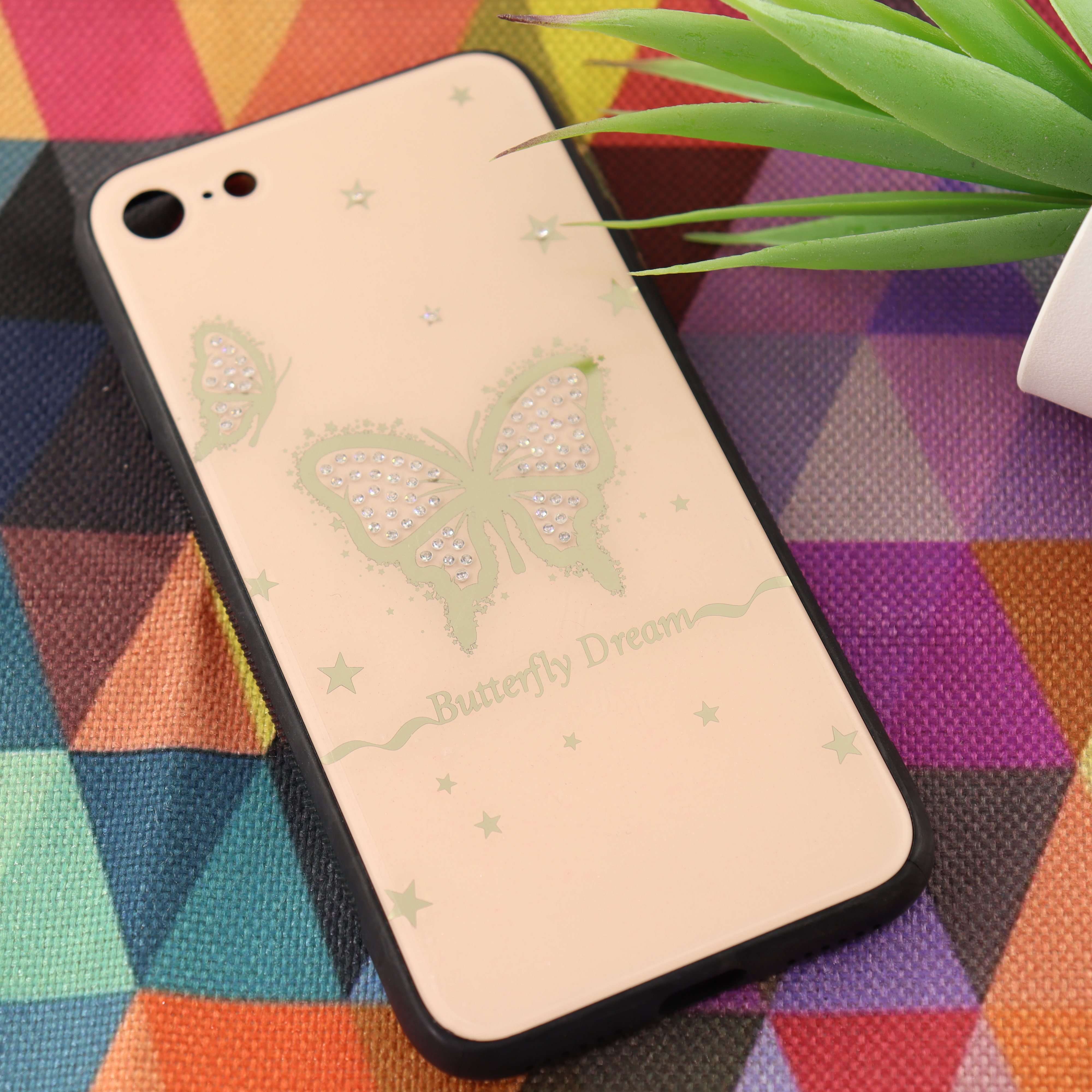 Чехол Оргстекло Стразы для iPhone 7/8 бабочка бежевый