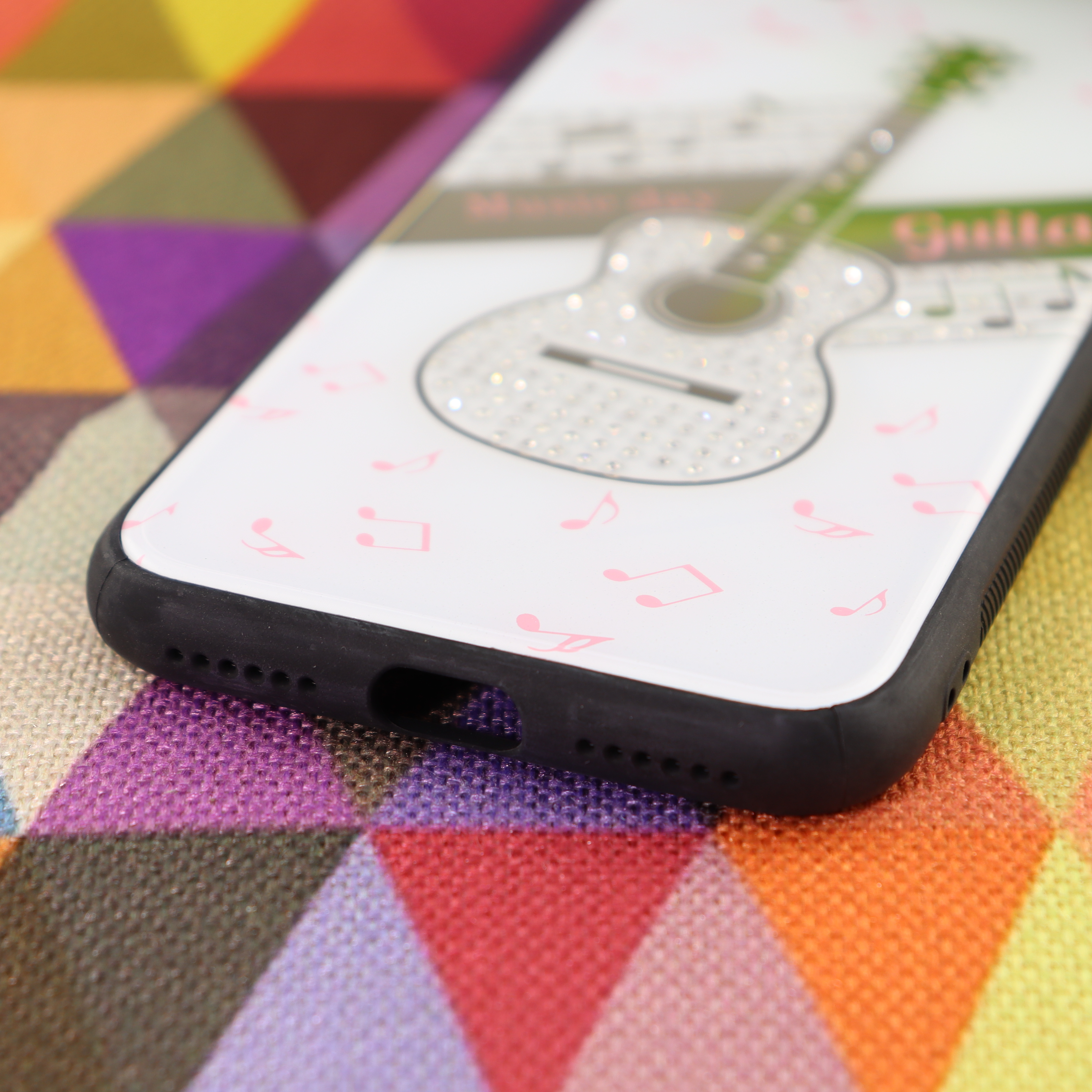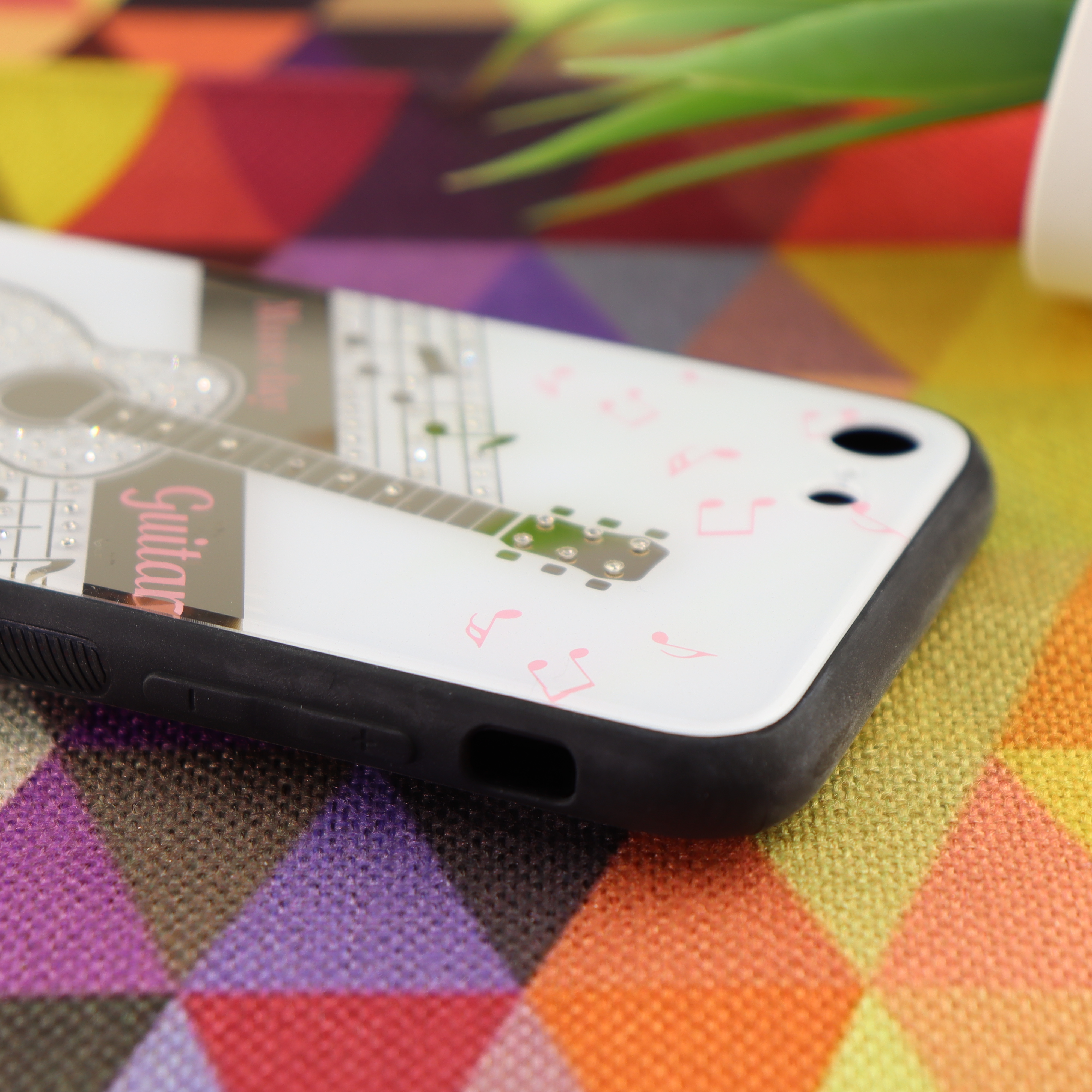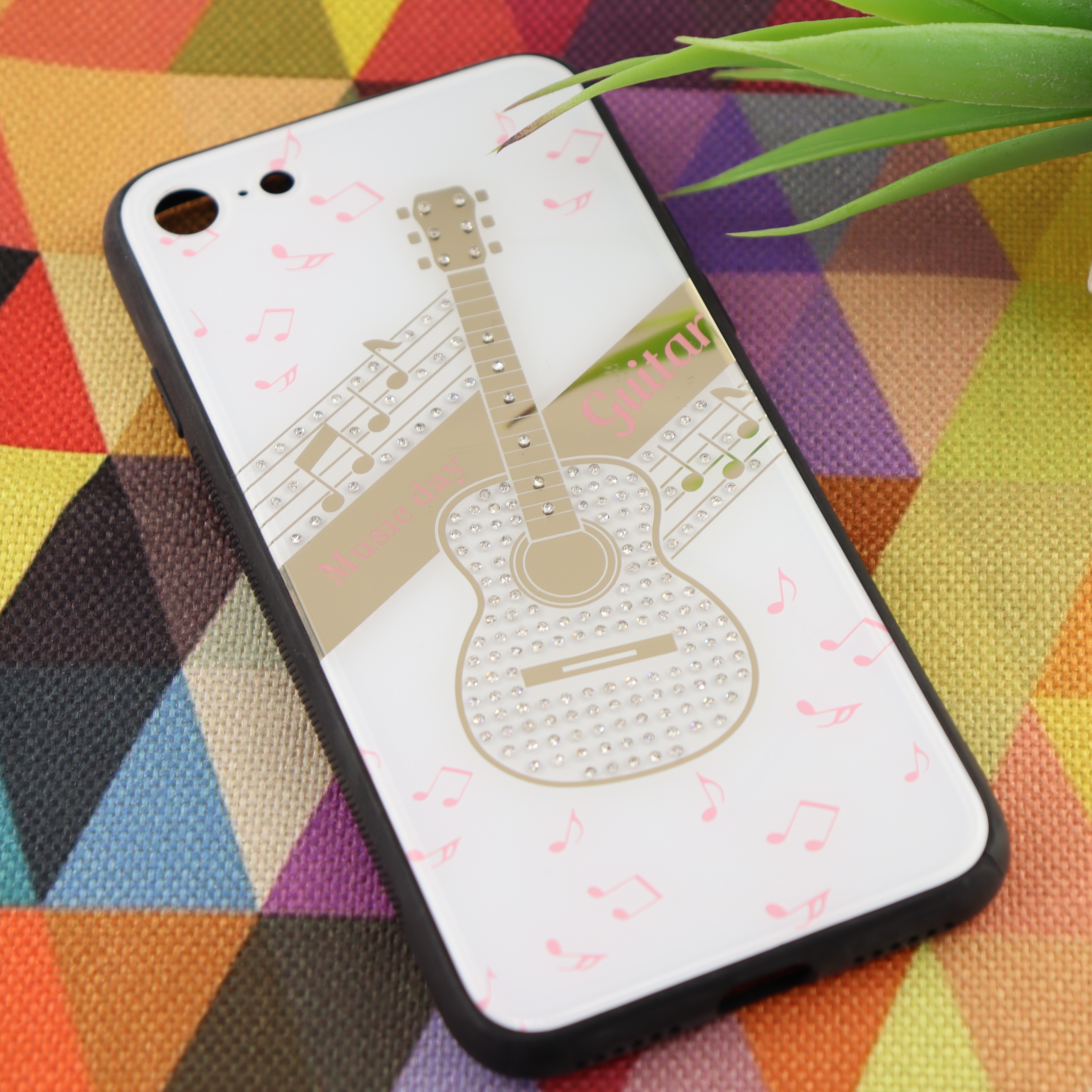 Чехол Оргстекло Стразы для iPhone 7/8 гитара белый