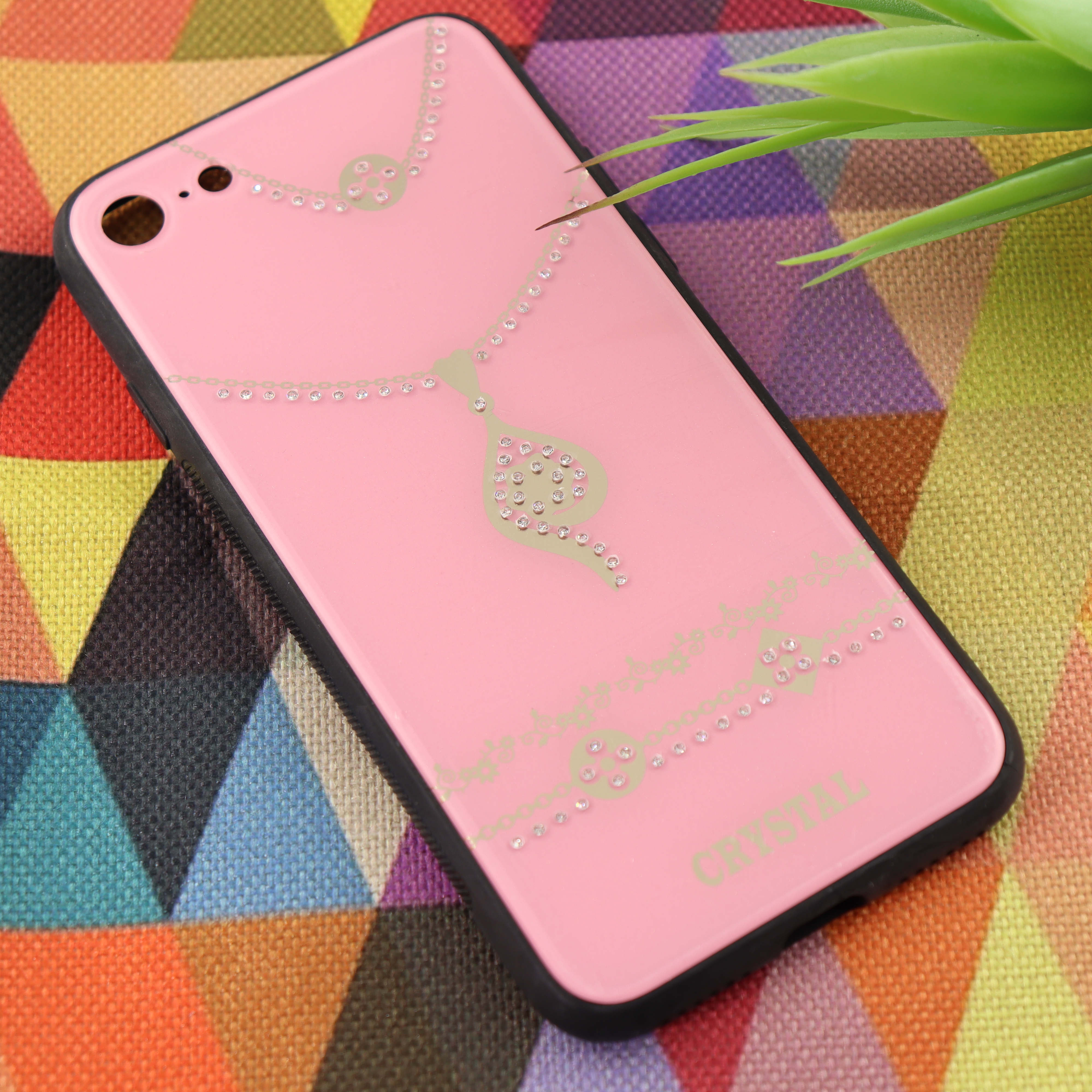 Чехол Оргстекло Стразы для iPhone 7/8 ожерелье розовый