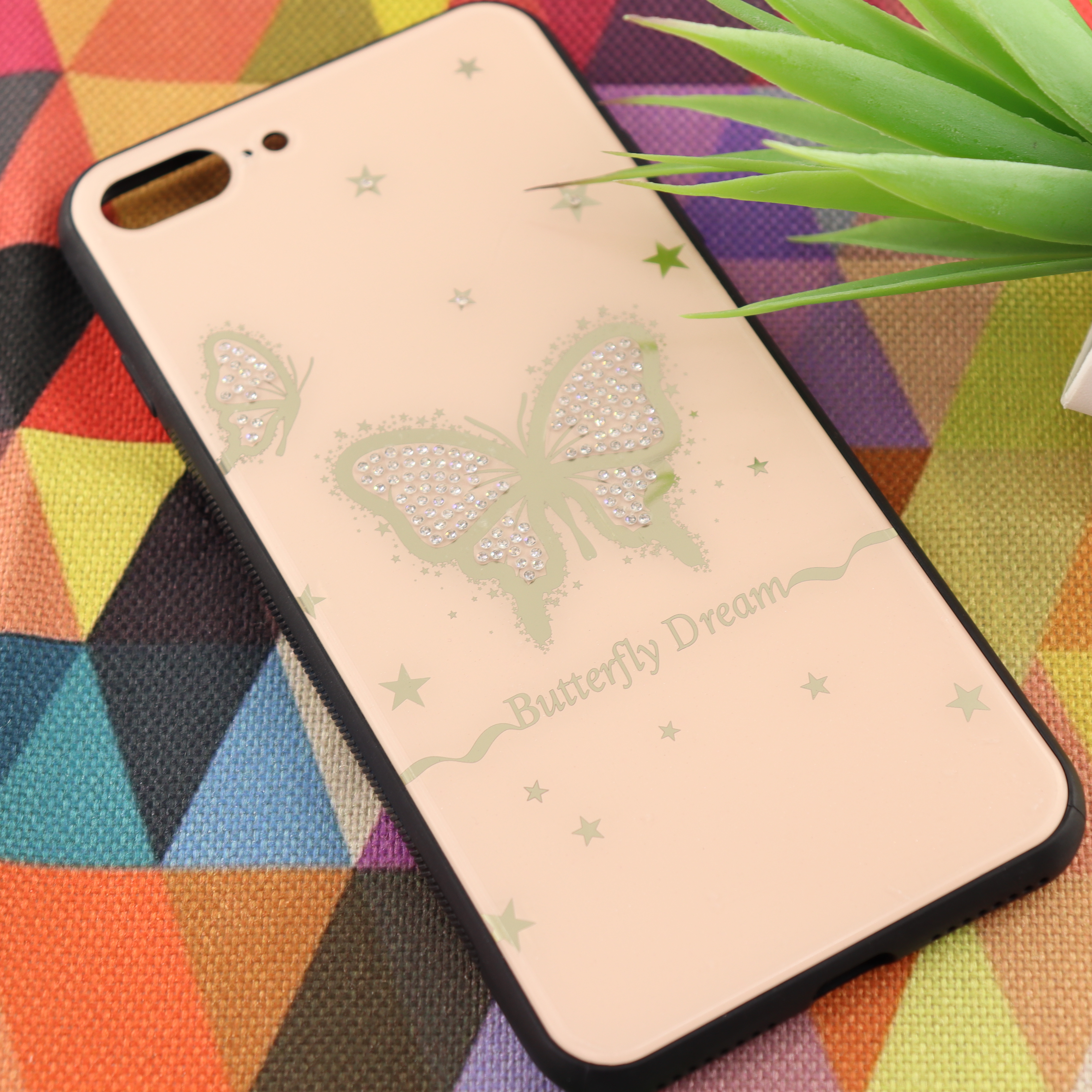 Чехол Оргстекло Стразы для iPhone 7/8 Plus бабочка бежевый