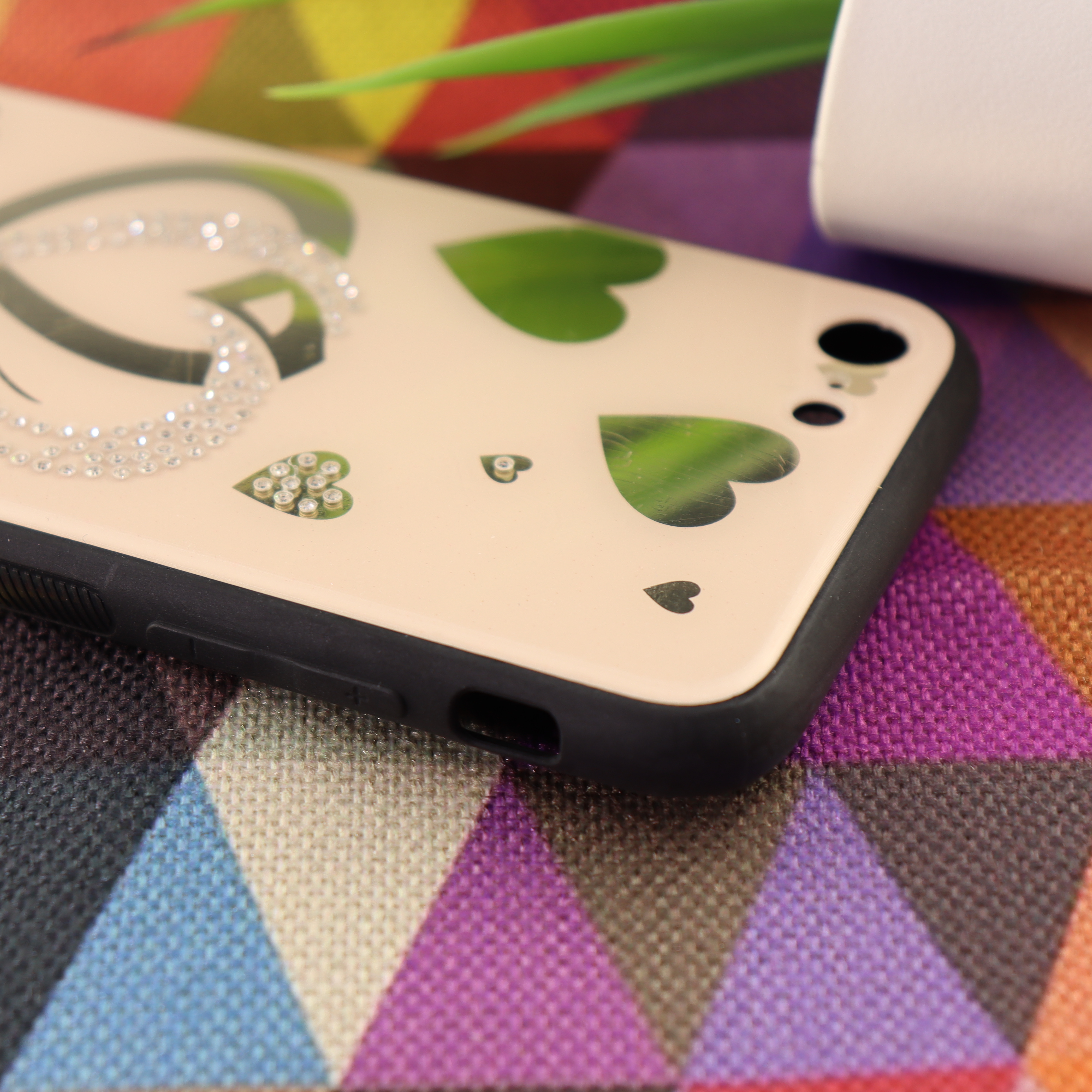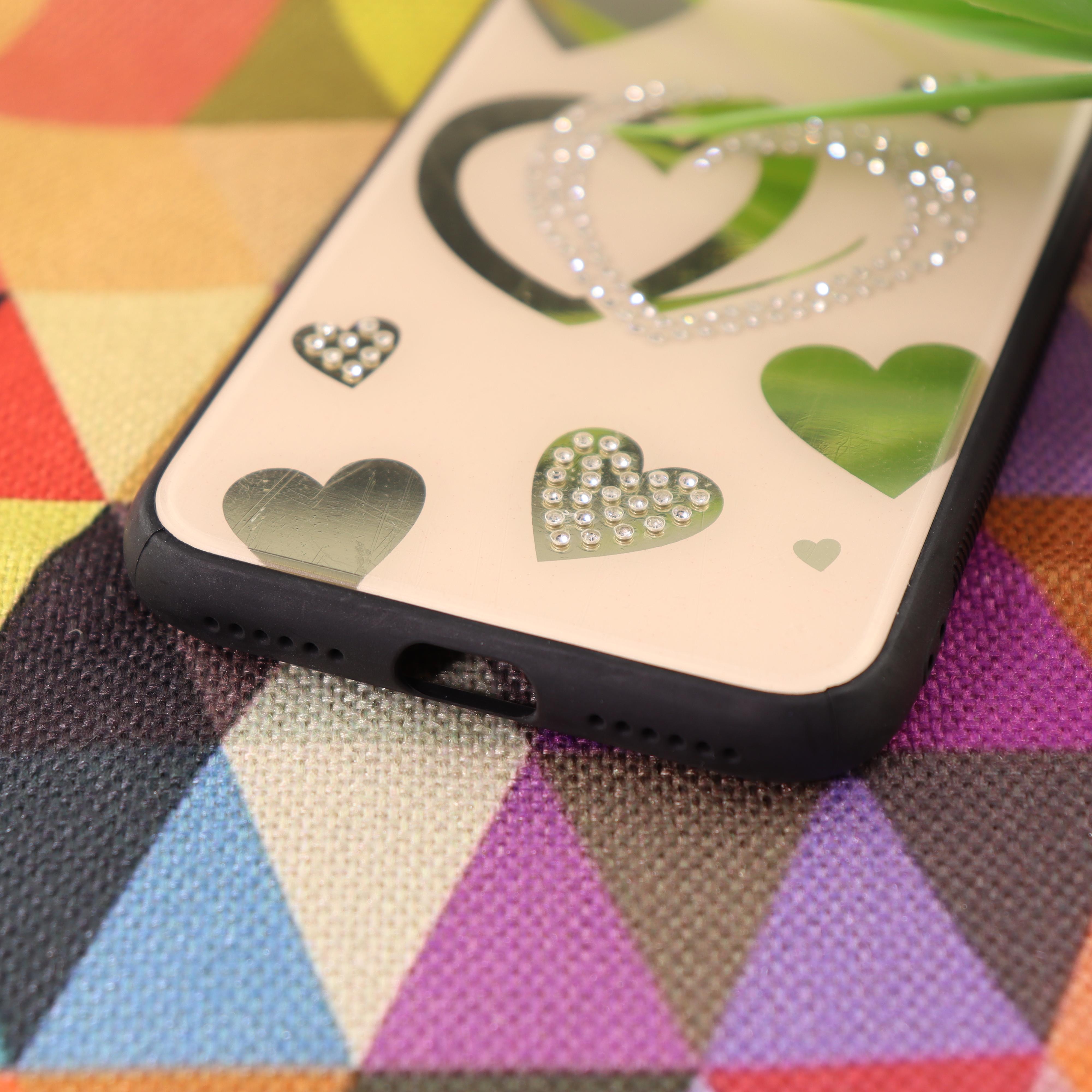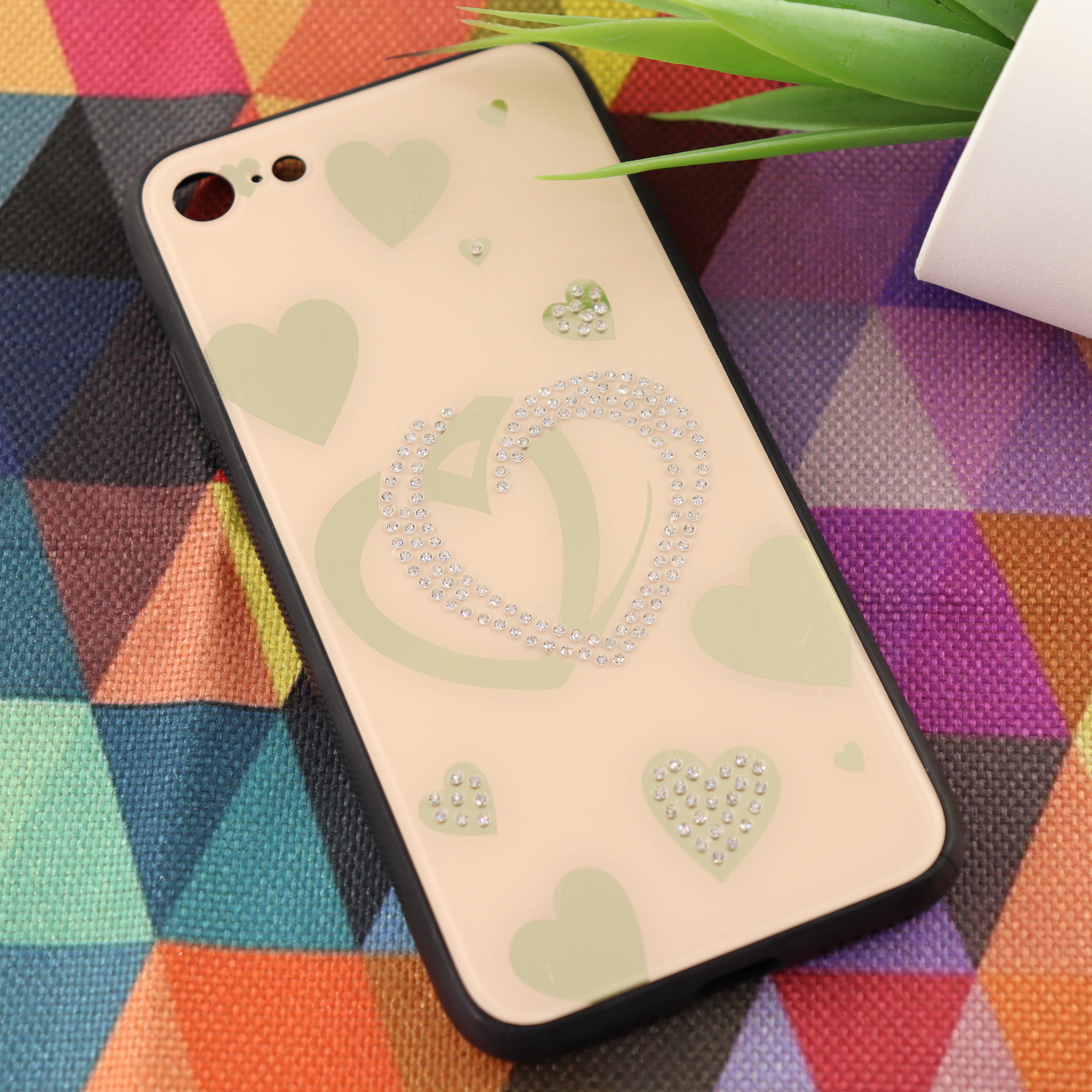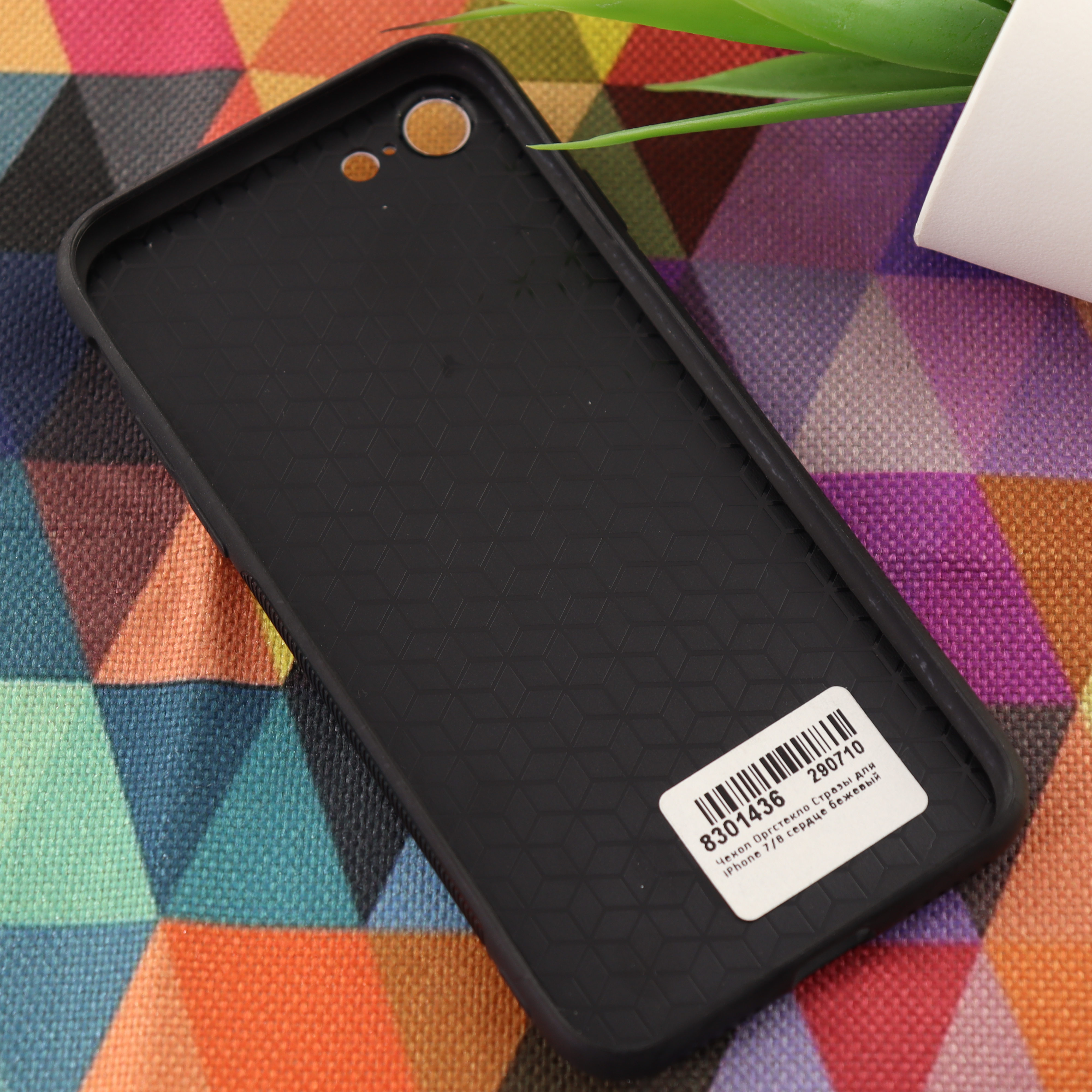 Чехол Оргстекло Стразы для iPhone 7/8 сердце бежевый