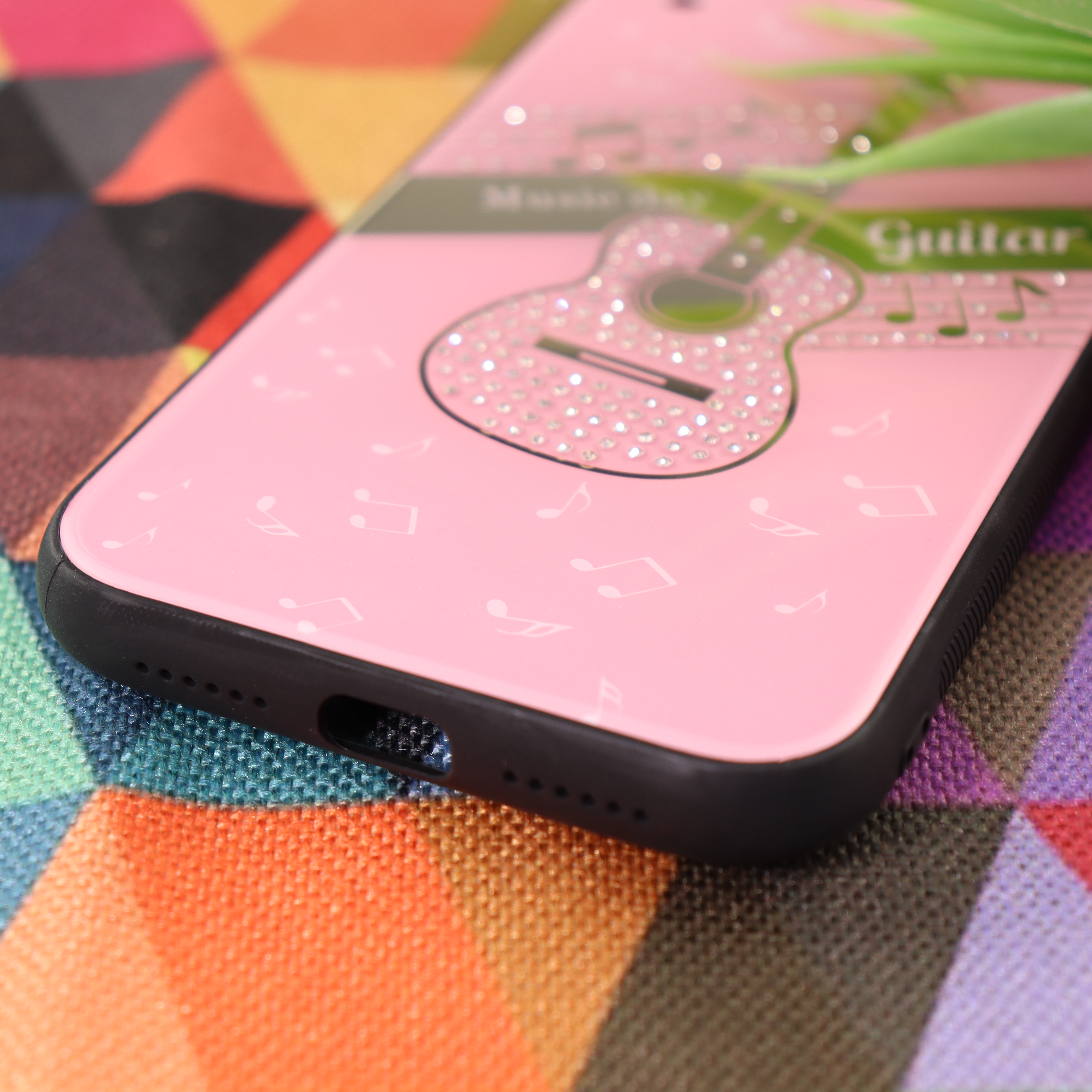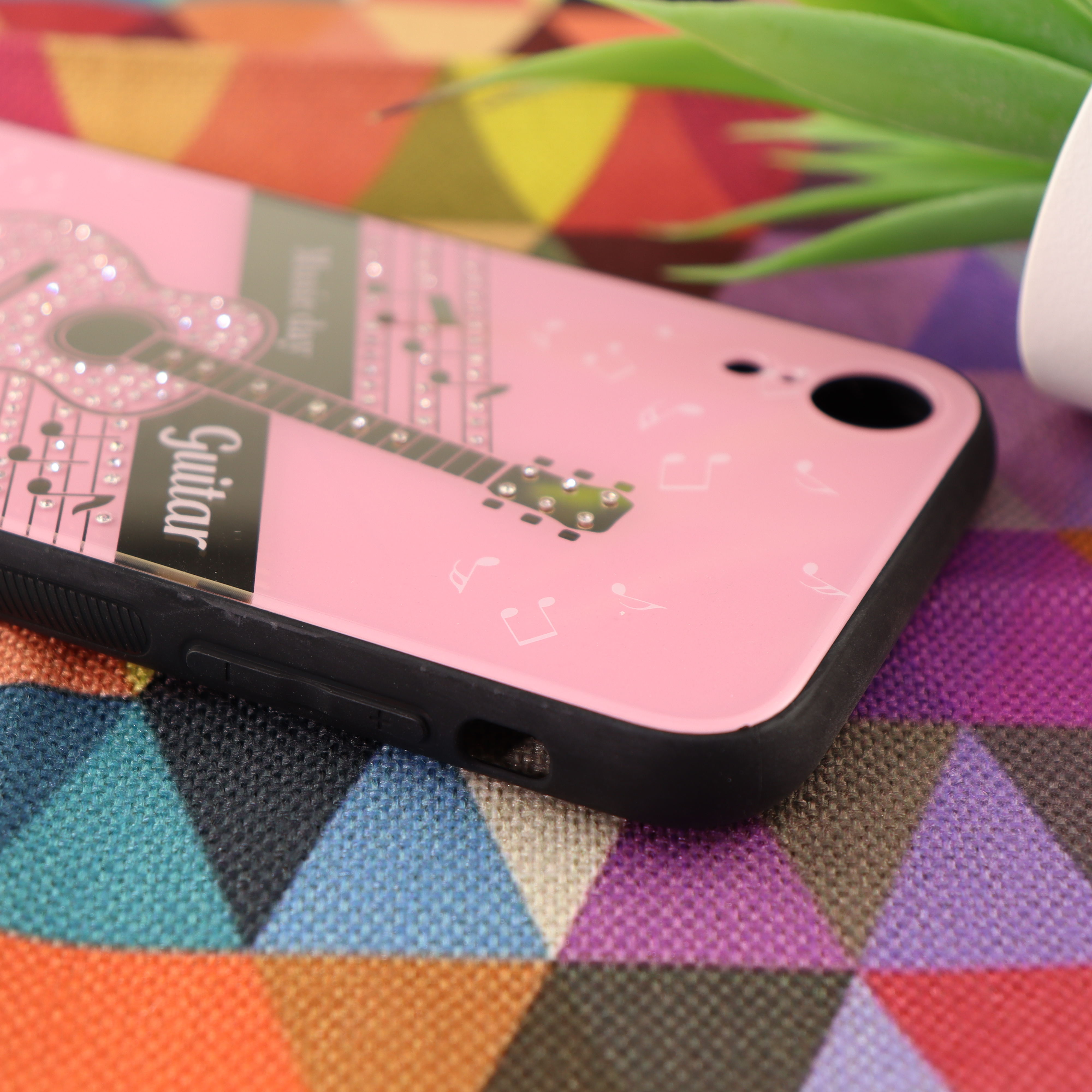 Чехол Оргстекло Стразы для iPhone XR гитара розовый