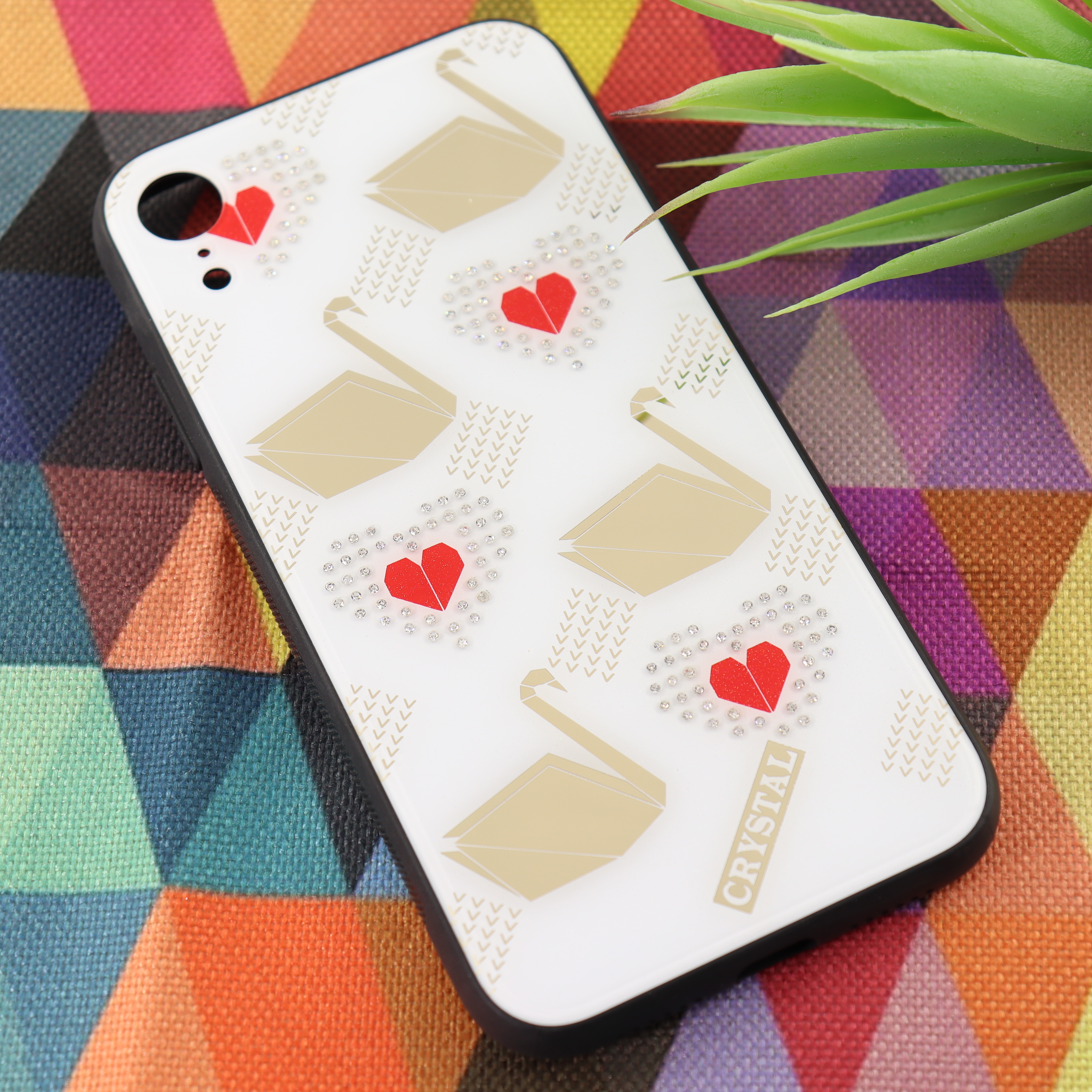 Чехол Оргстекло Стразы для iPhone XR лебедь белый
