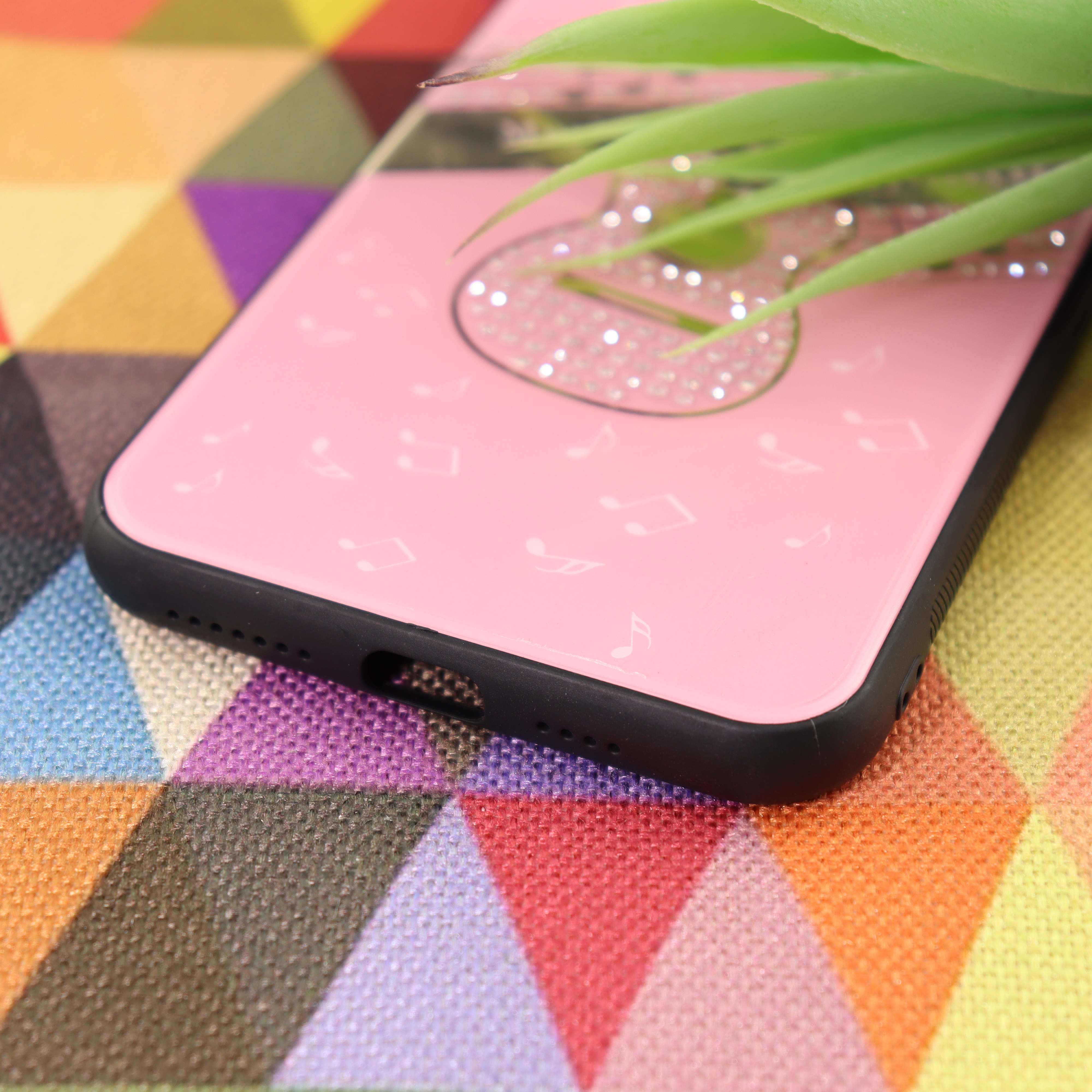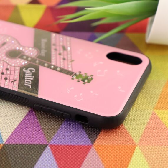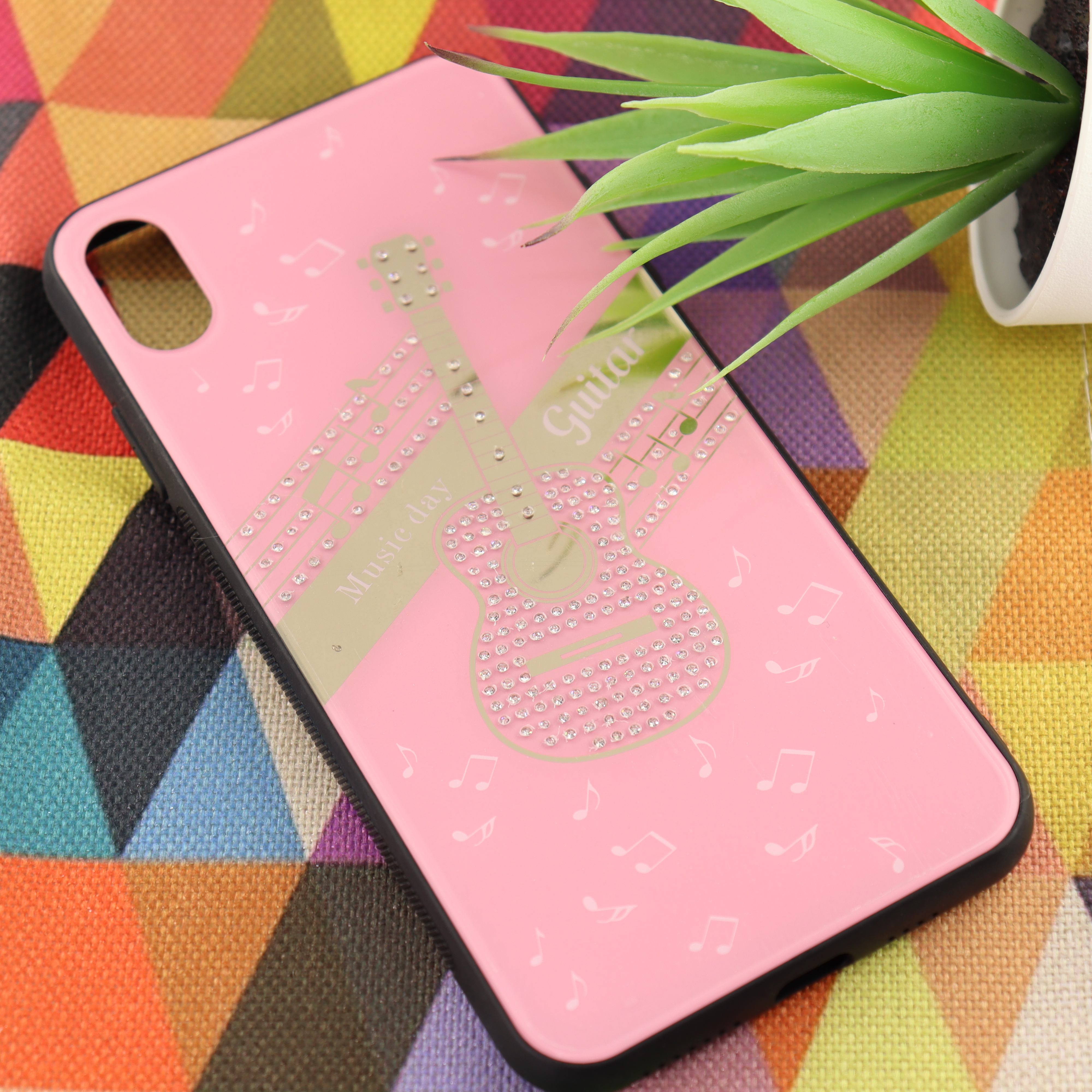 Чехол Оргстекло Стразы для iPhone XS Max гитара розовый