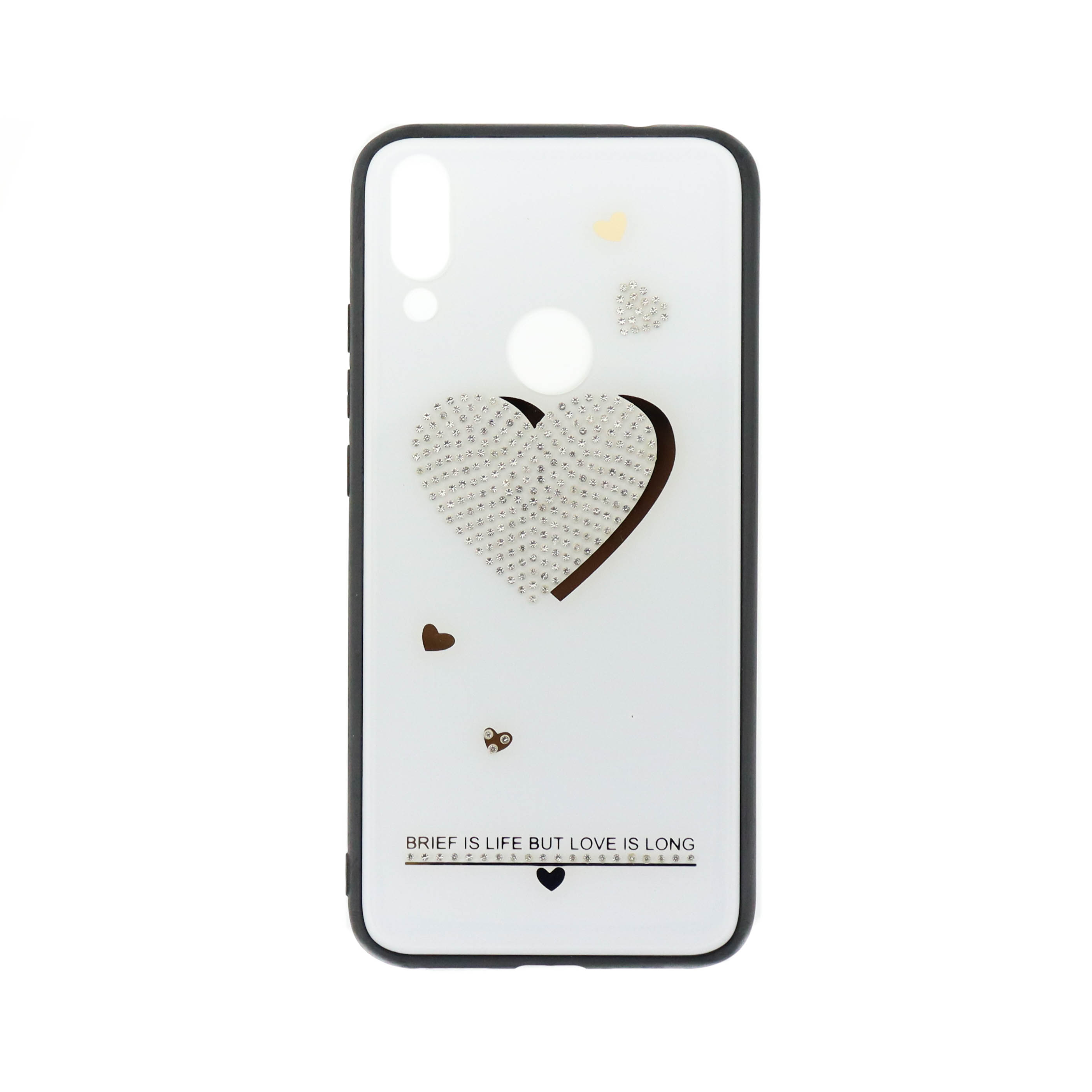 Чехол Оргстекло Стразы Сердце для Xiaomi Redmi 7 белый