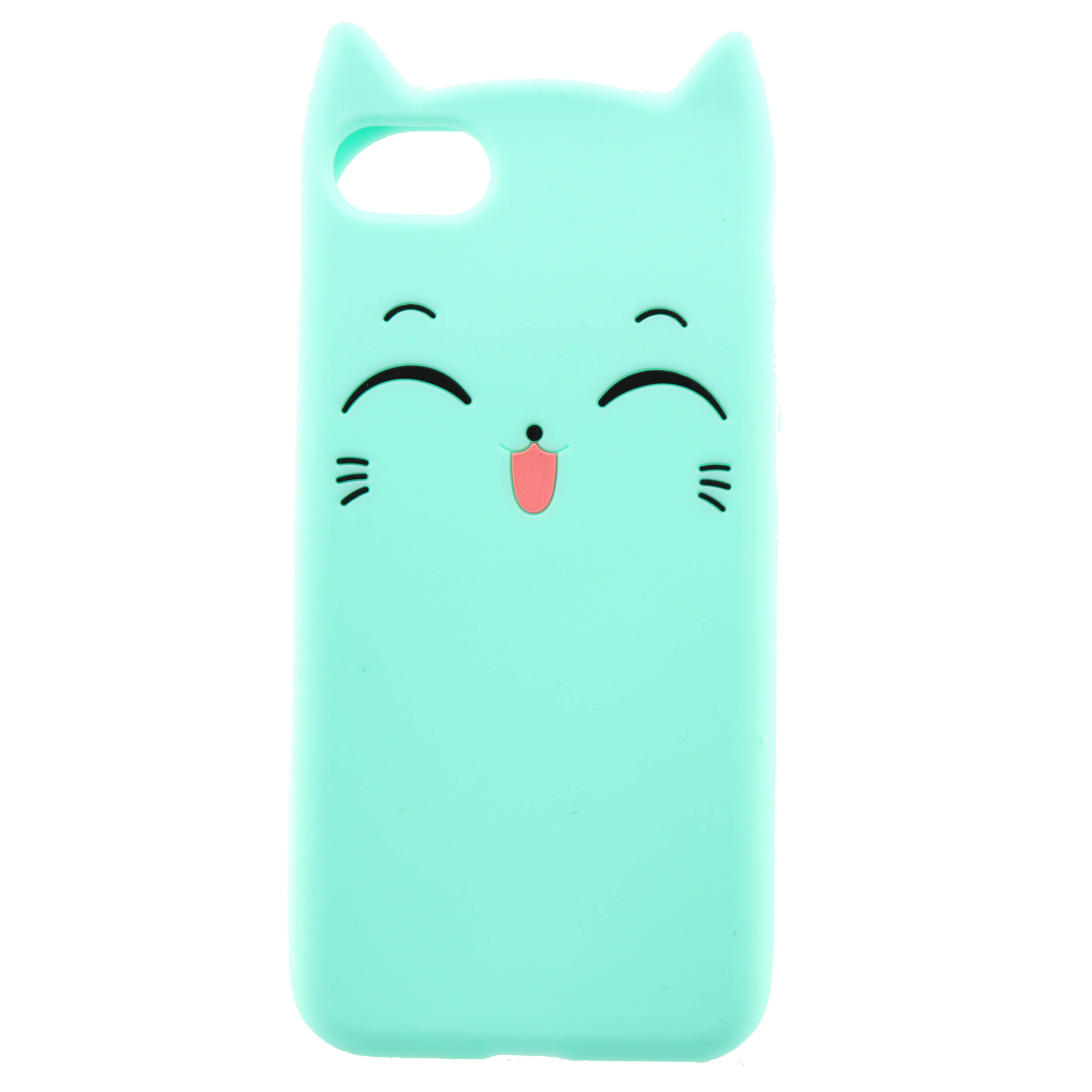 Чехол силиконовый Котик для iPhone 7/8, бирюзовый