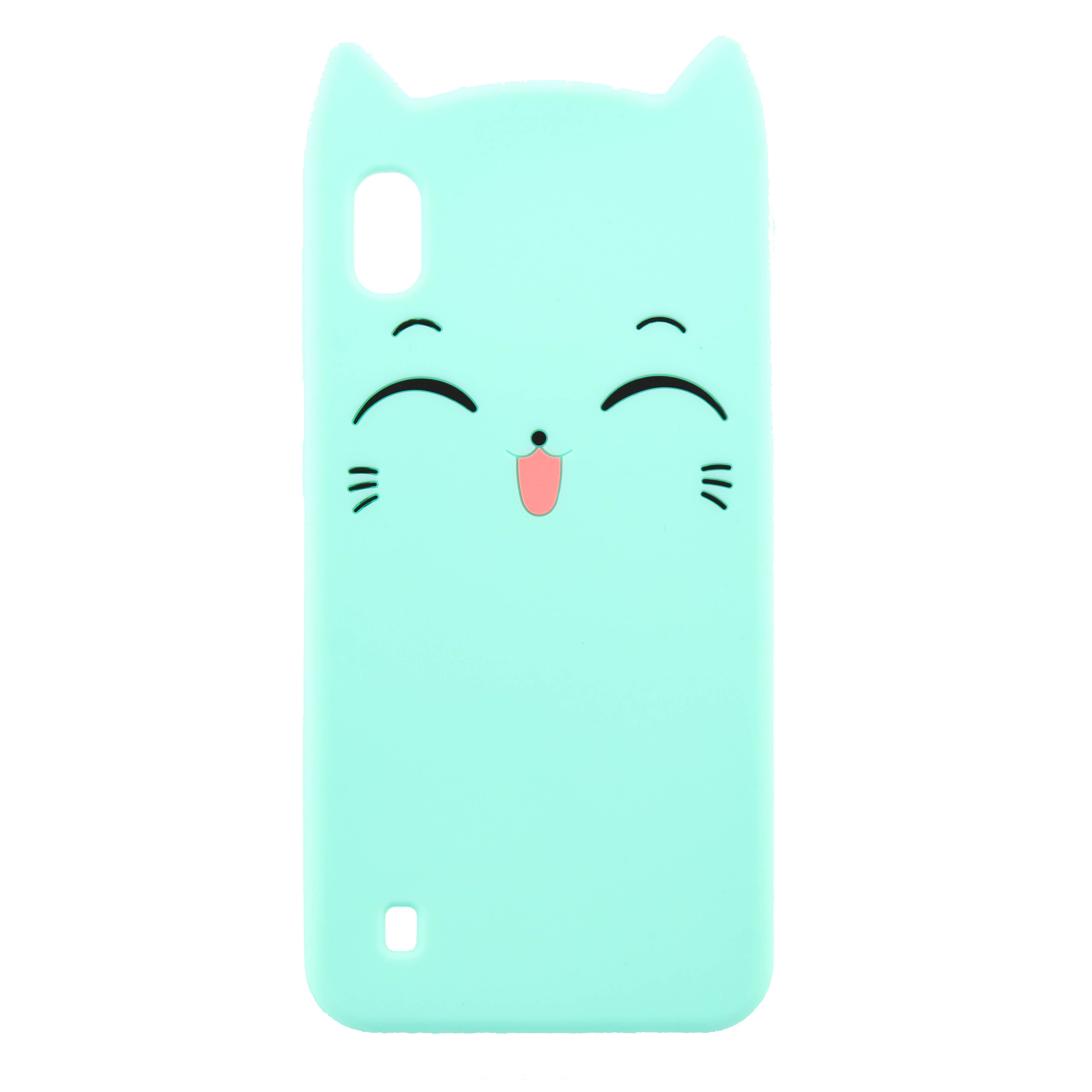 Чехол силиконовый Котик для Samsung Galaxy A10, бирюзовый