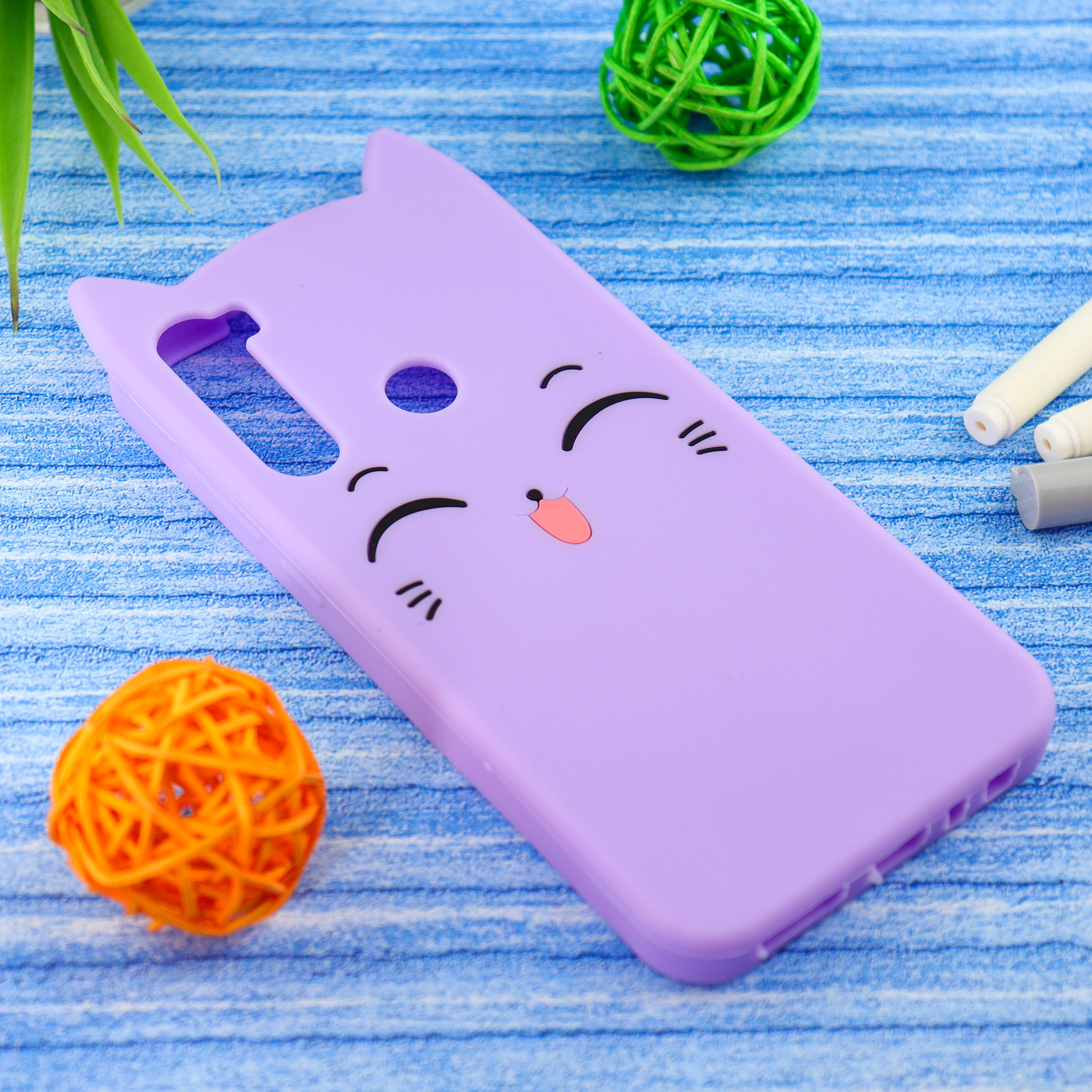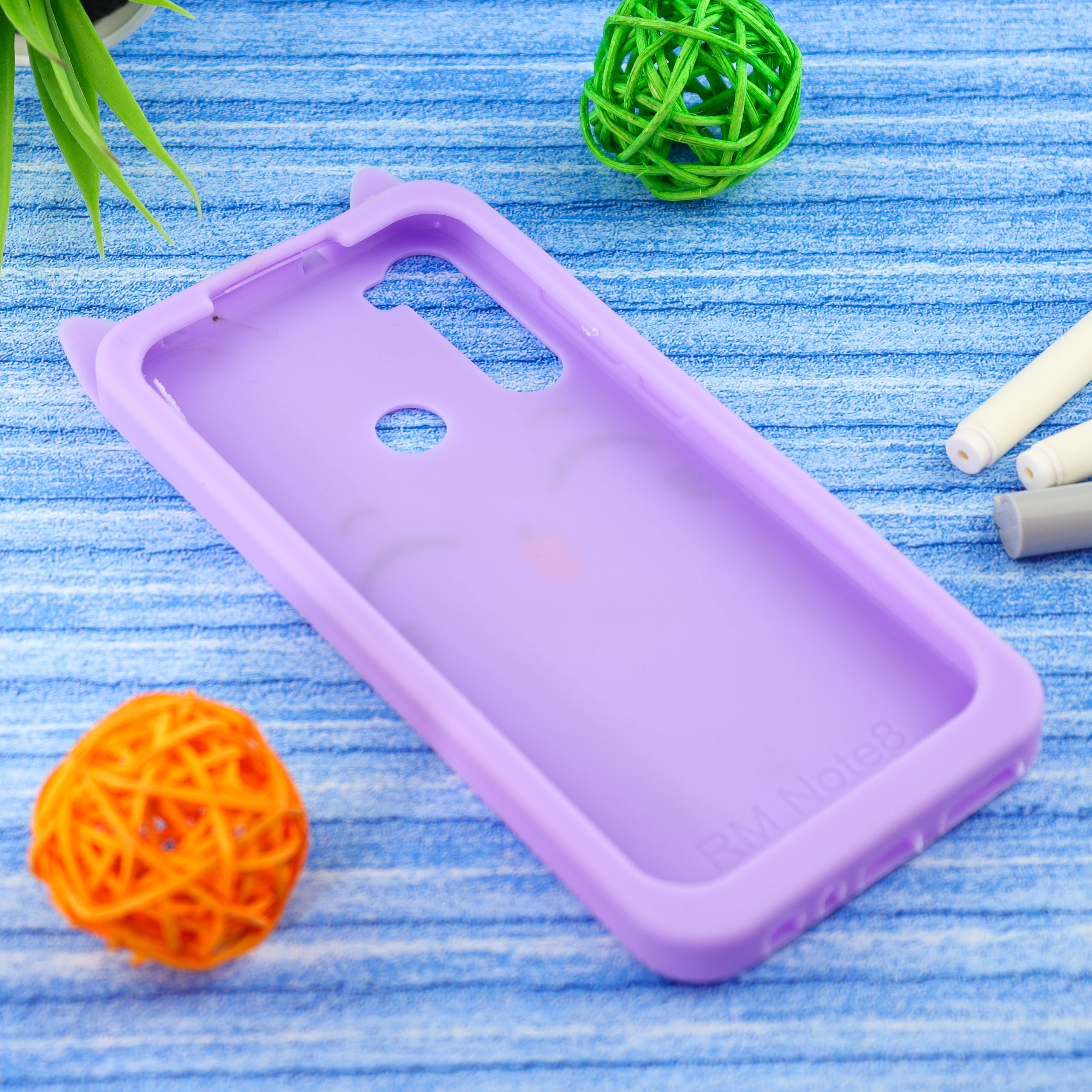 Чехол силиконовый Котик для Xiaomi Redmi Note 8, светло-фиолетовый