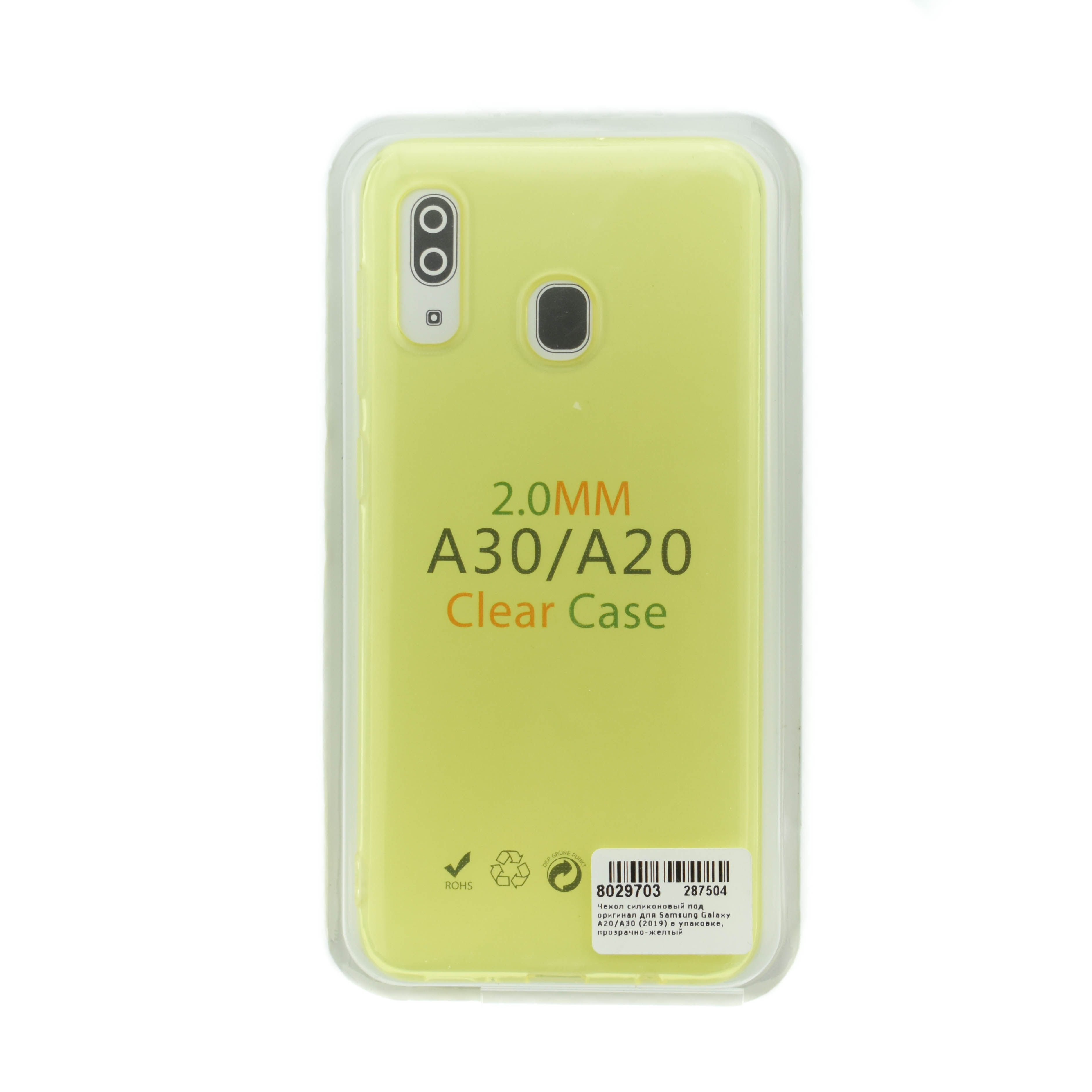 Чехол силиконовый под оригинал для Samsung Galaxy A20/A30 (2019) в упаковке, прозрачно-желтый