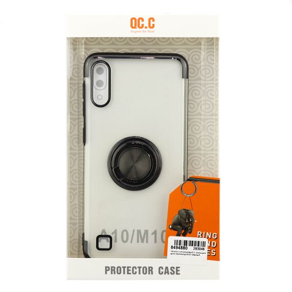 Чехол силиконовый с кольцом для Samsung A10 чёрный