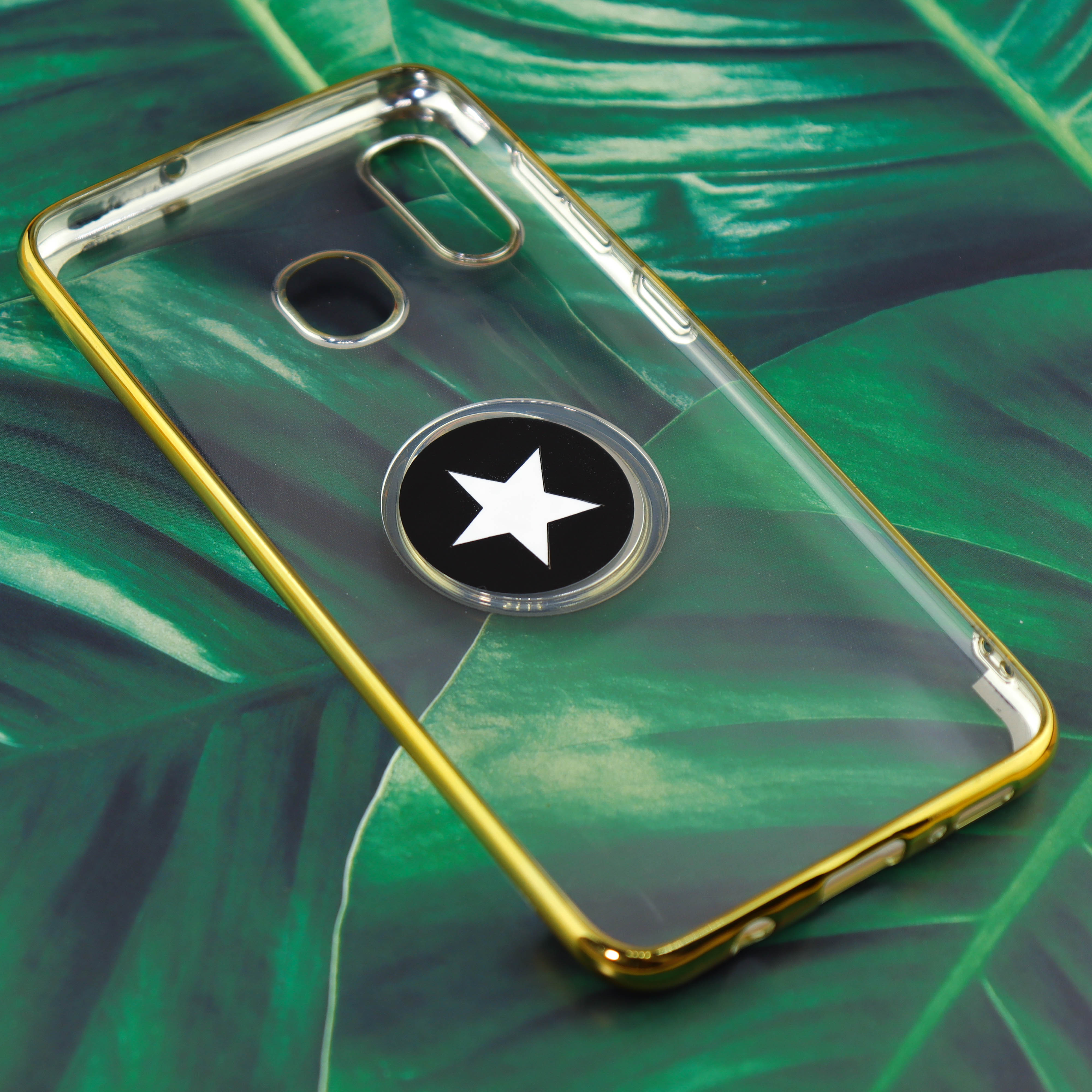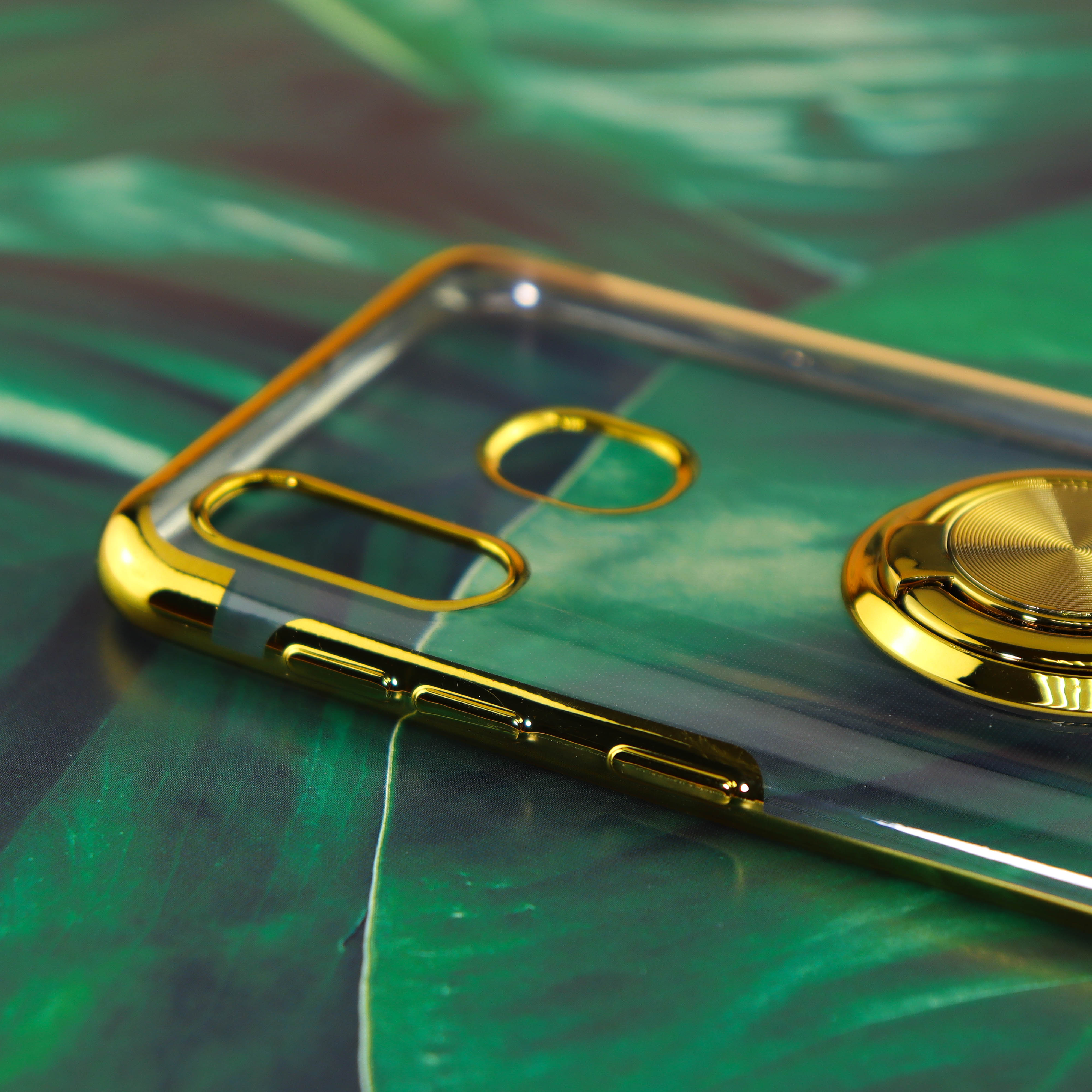 Чехол силиконовый с кольцом для Samsung A20/A30 золото