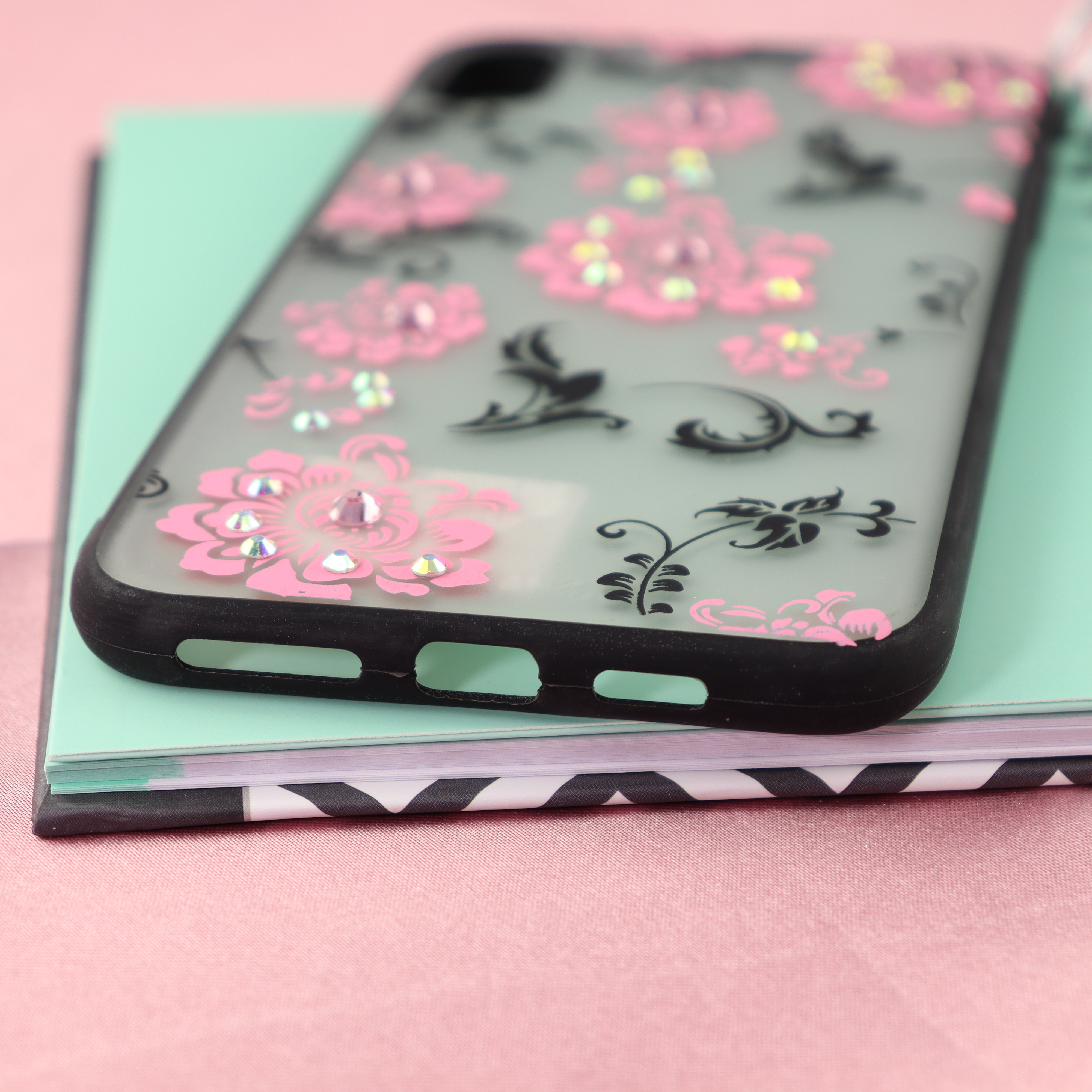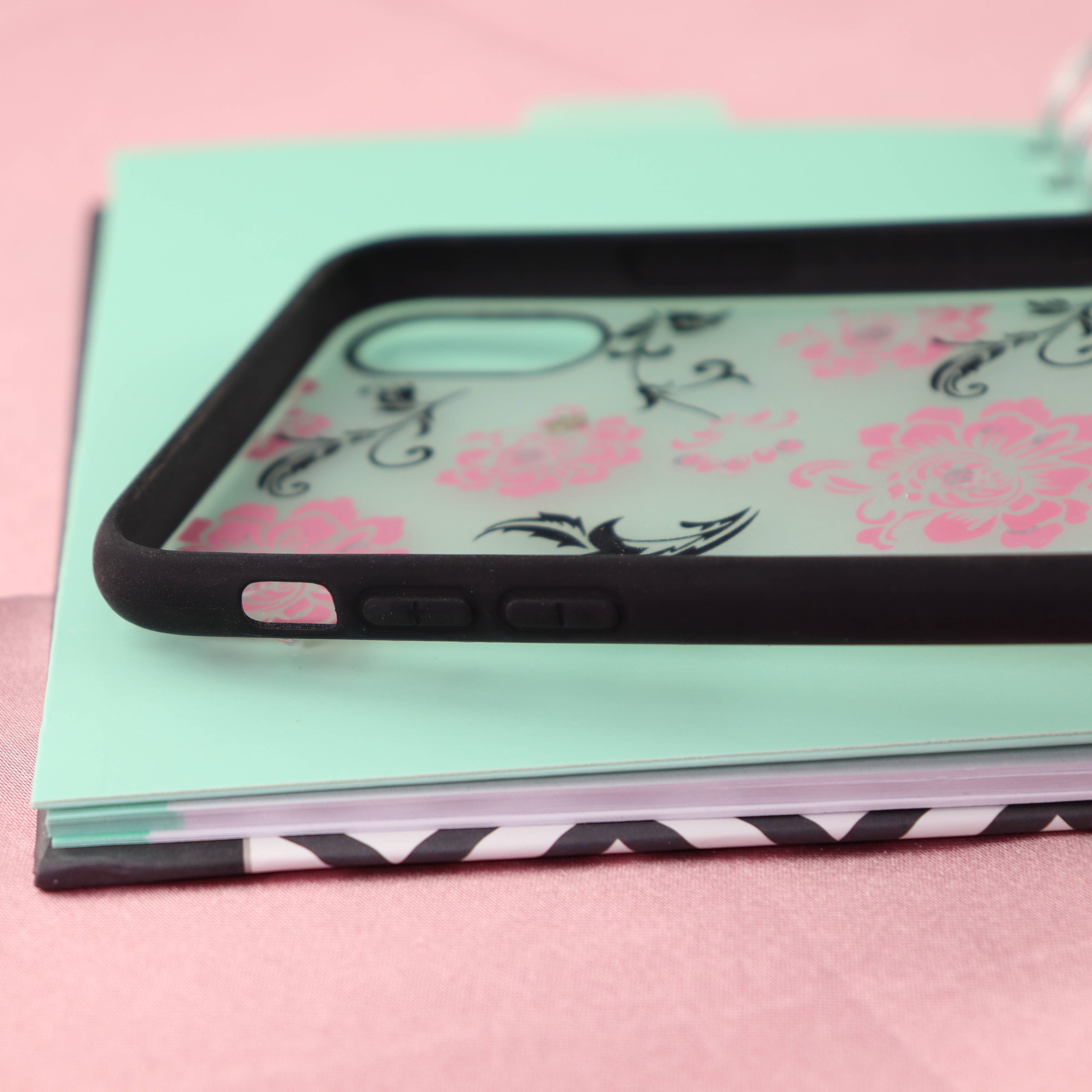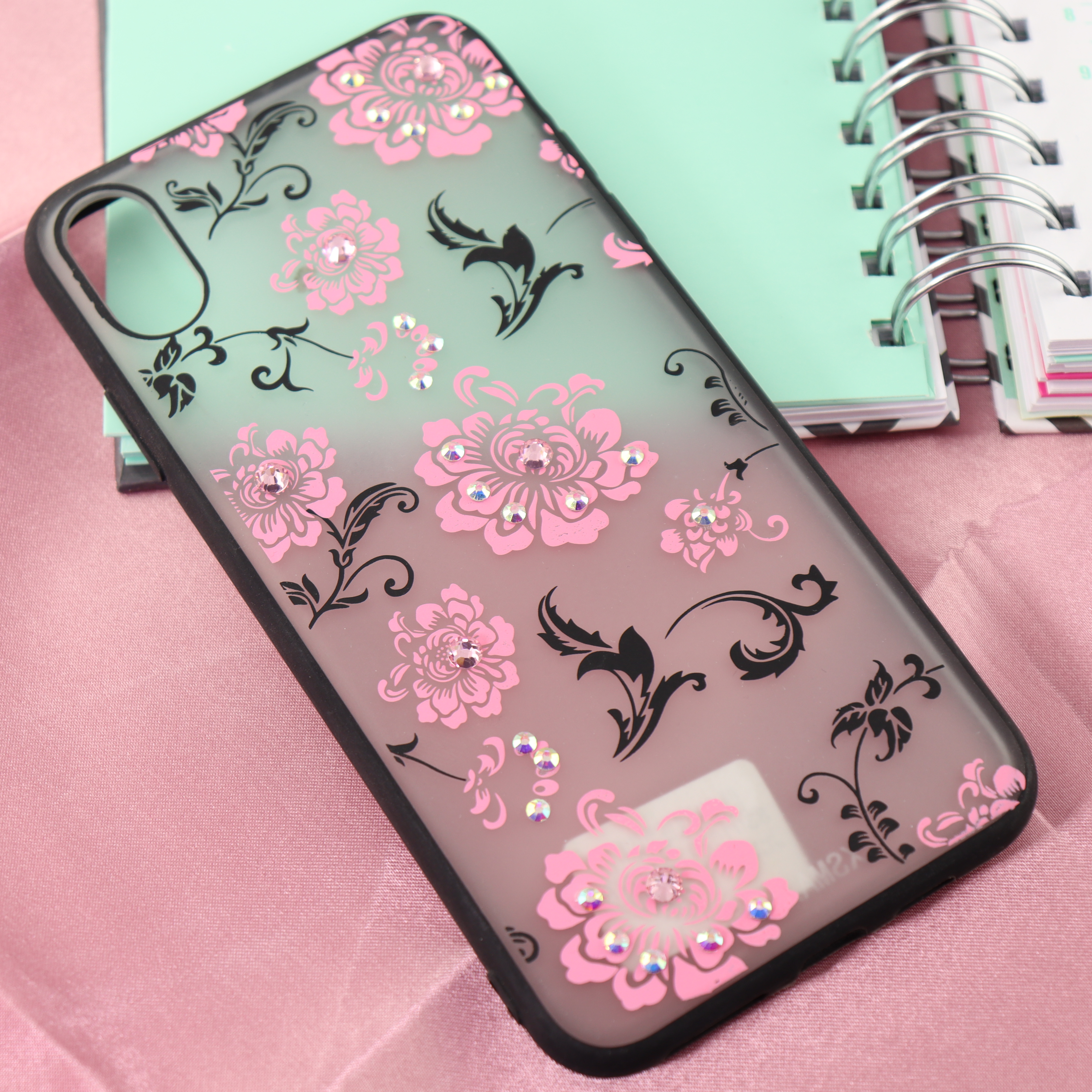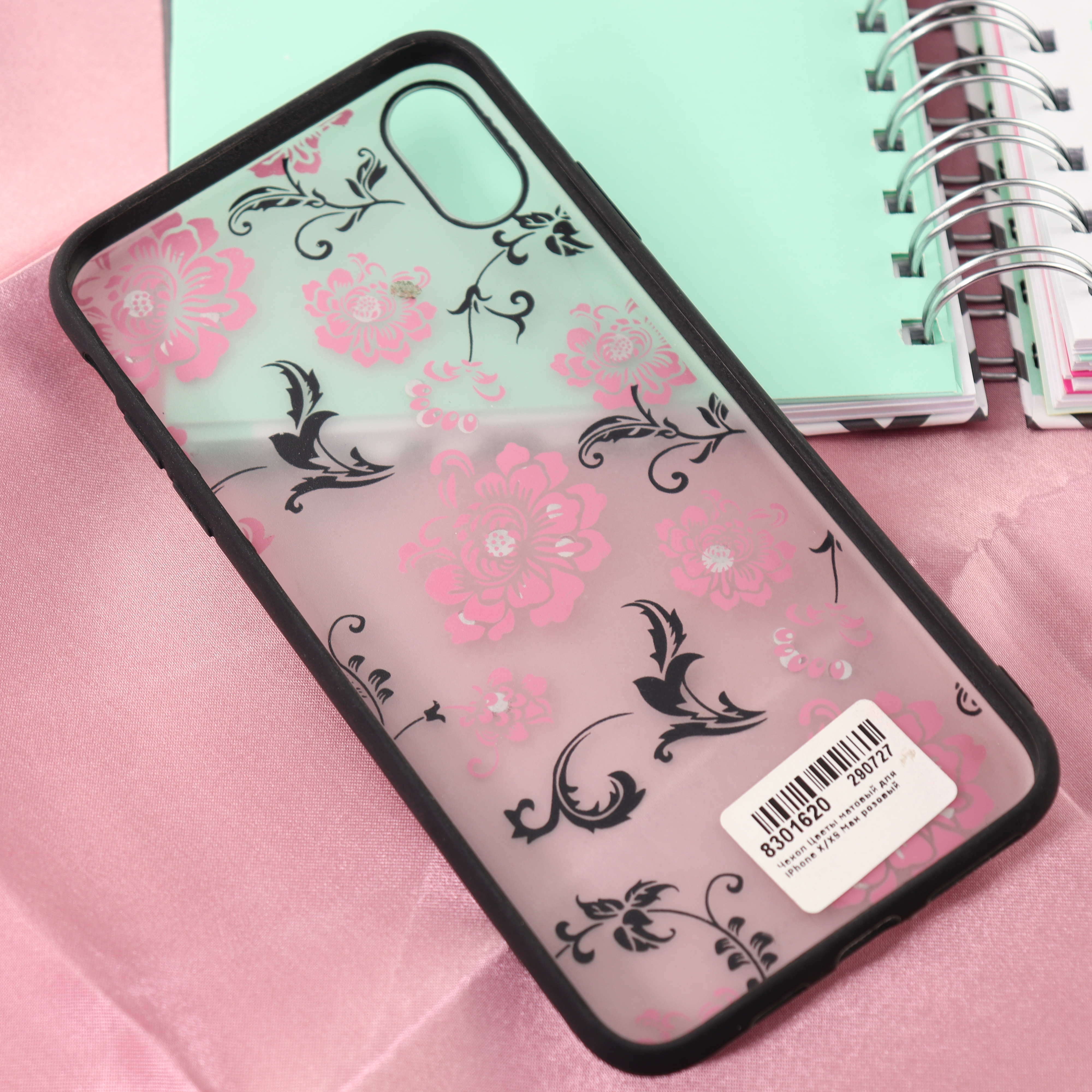 Чехол Цветы матовый для iPhone X/XS Max розовый