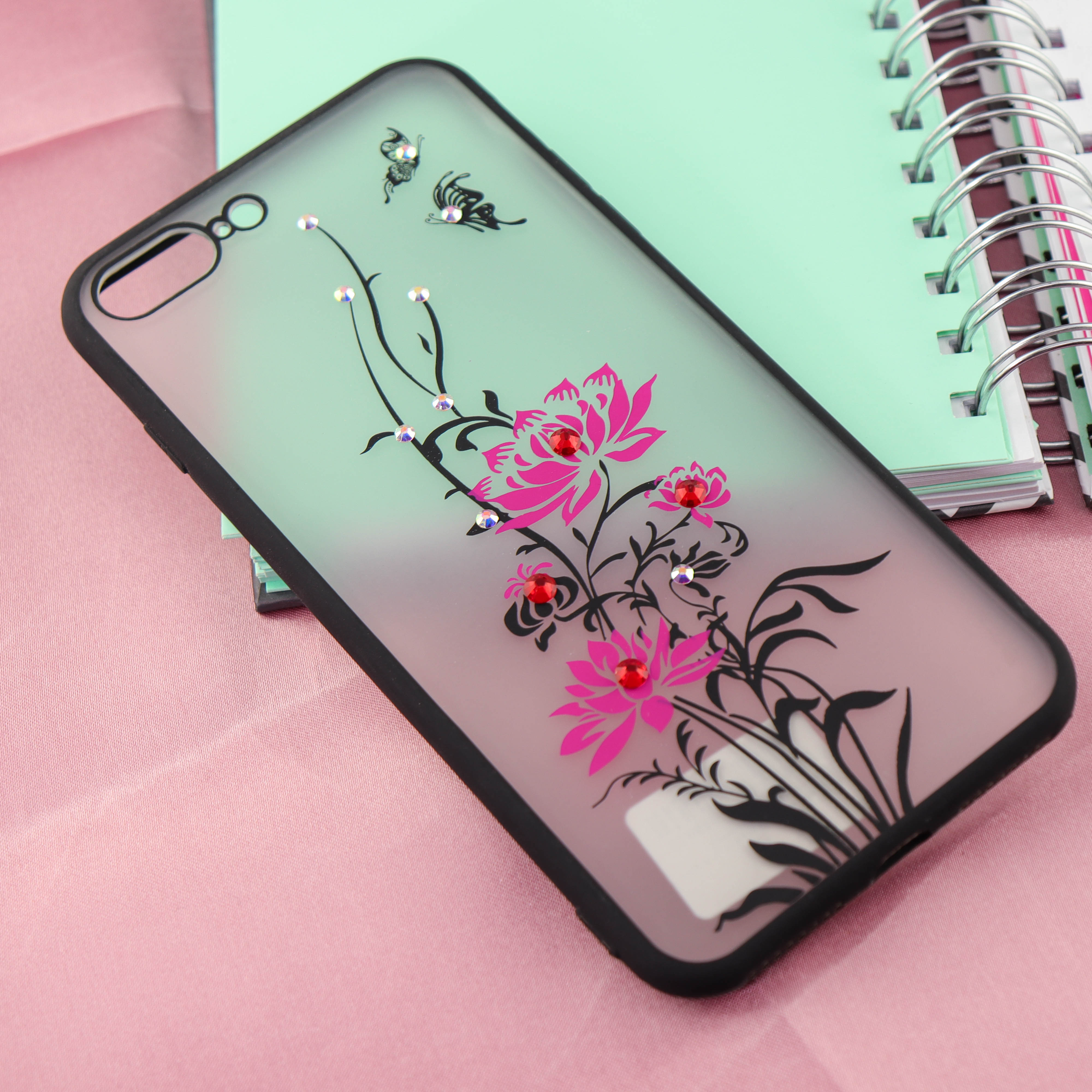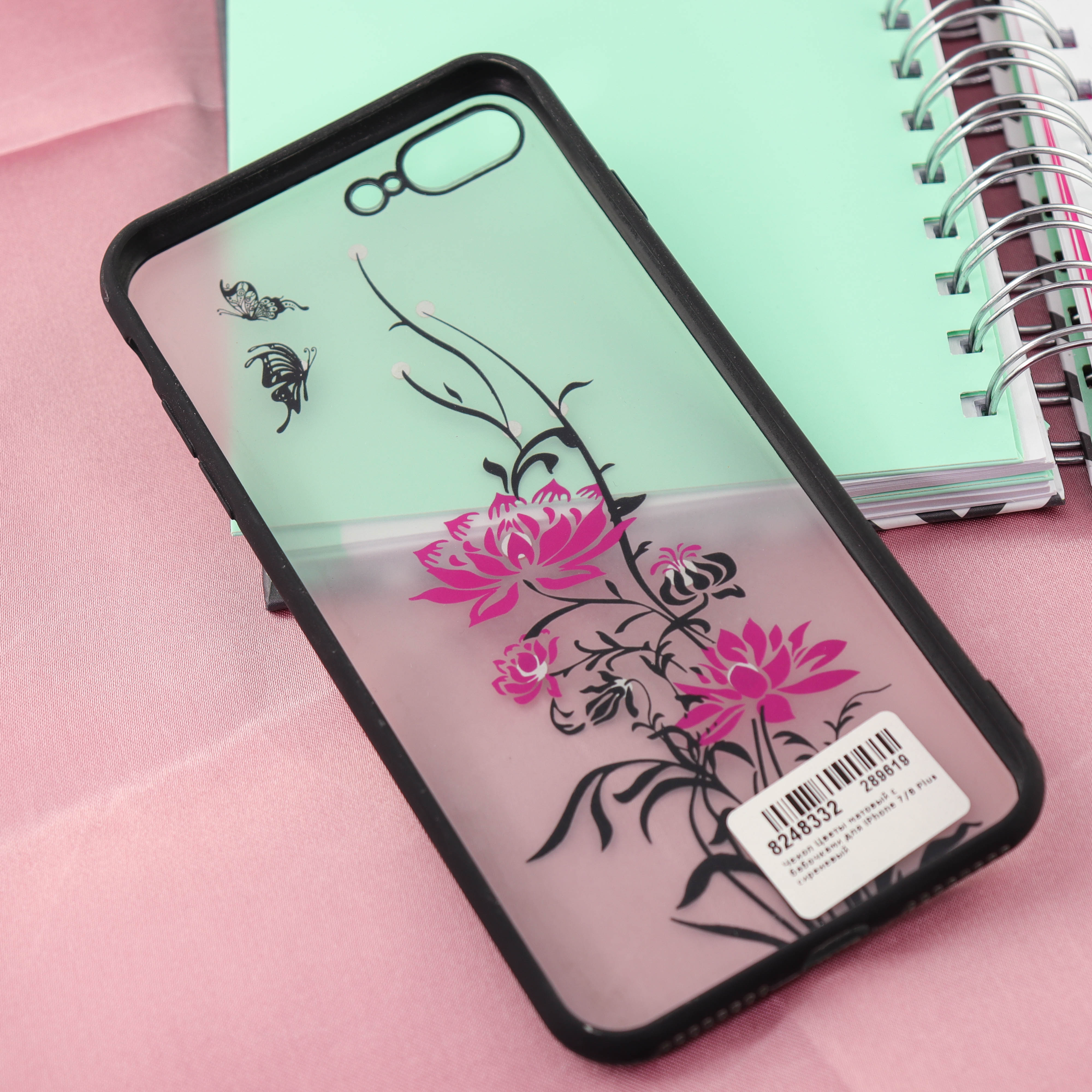 Чехол Цветы матовый с бабочками для iPhone 7/8 Plus сиреневый