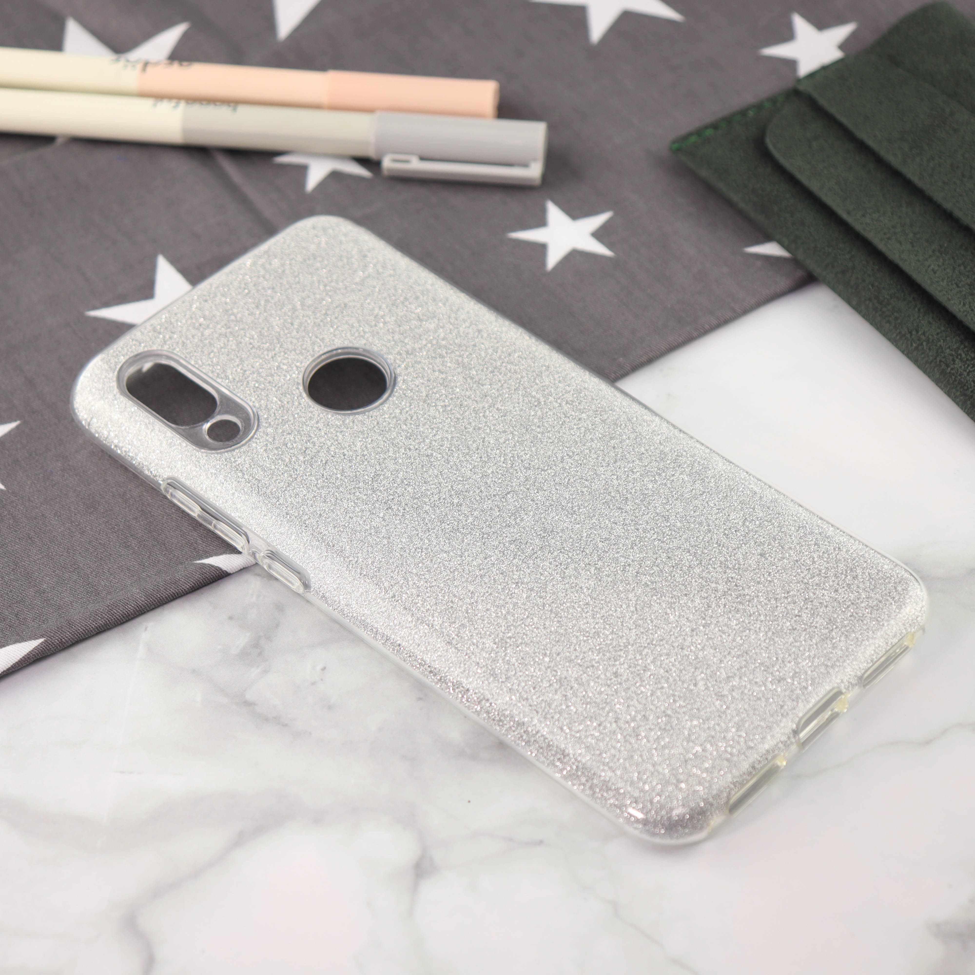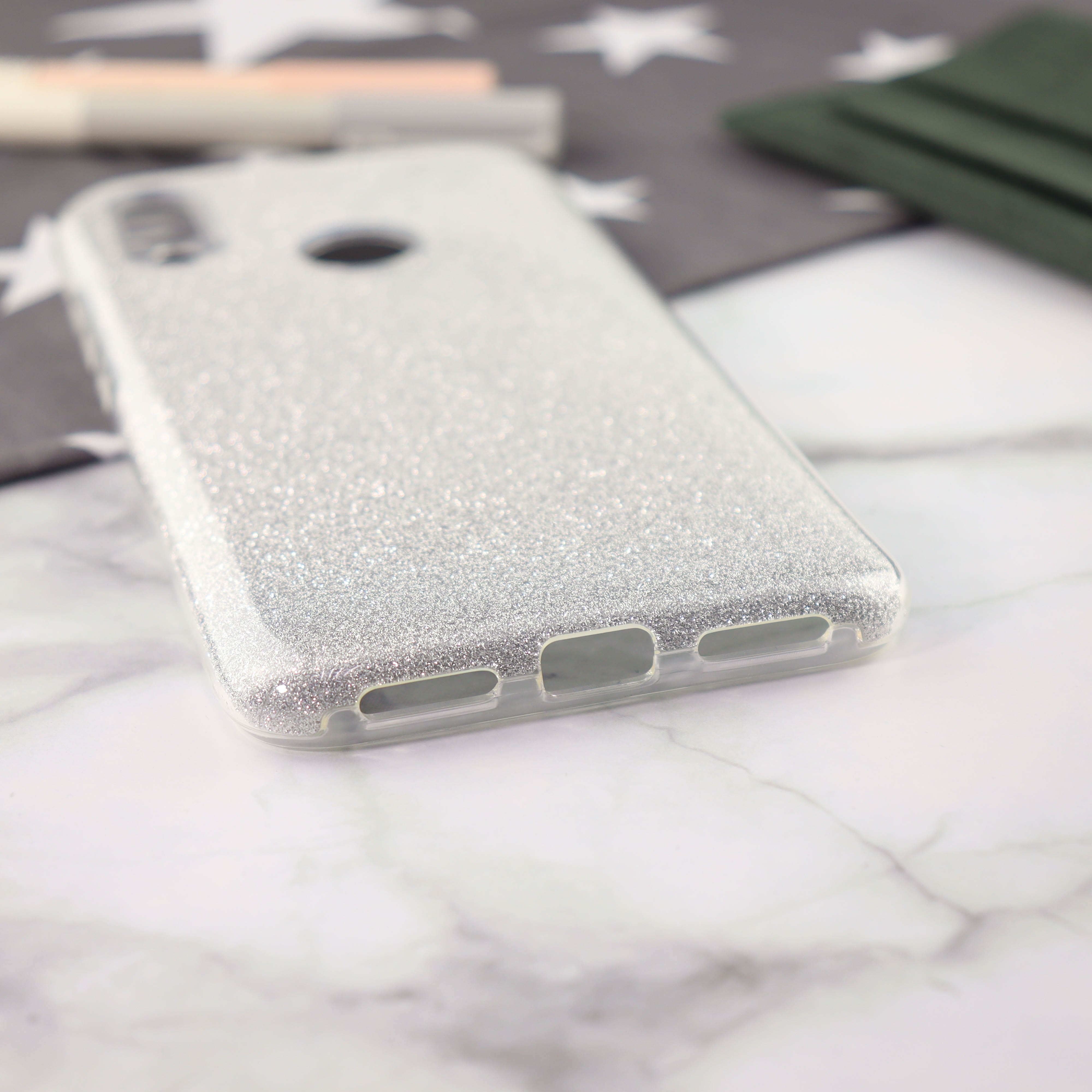Накладка силиконовая блестящая для Xiaomi Redmi 7, серебряный