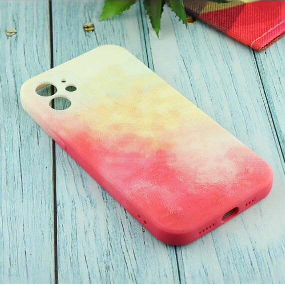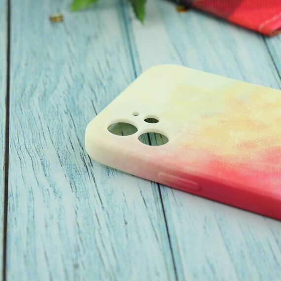 Накладка силиконовая soft touch с акварельным рисунком для iPhone 12 (6.1) красно-желтый