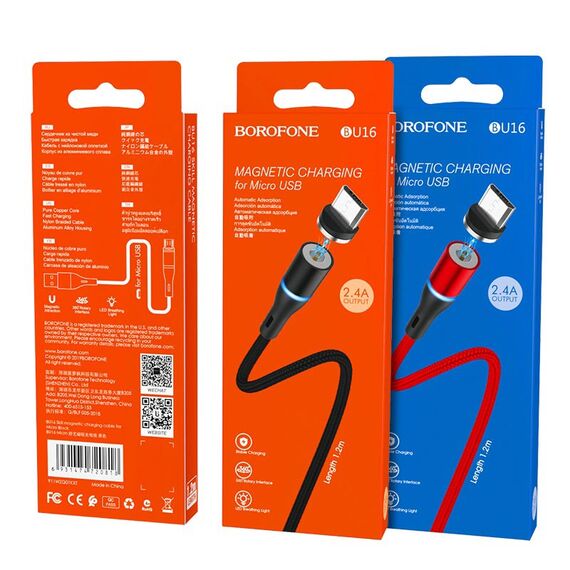 Дата-кабель BOROFONE BU16 Skill magnetic micro 1м (красный) (о)