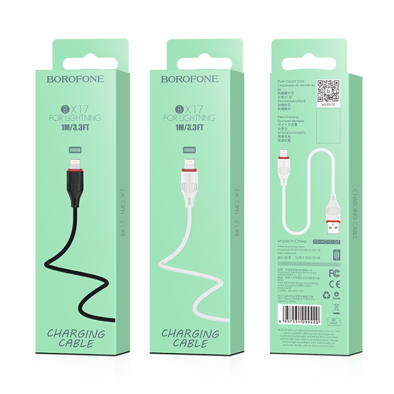 Дата-кабель BOROFONE BX17 Enjoy lightning 1м (белый) (о)