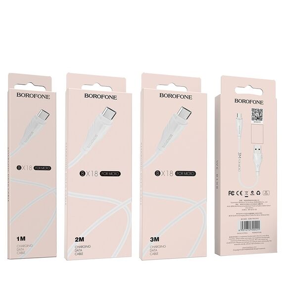 Дата-кабель BOROFONE BX18 Optimal micro 2м (белый) (о)