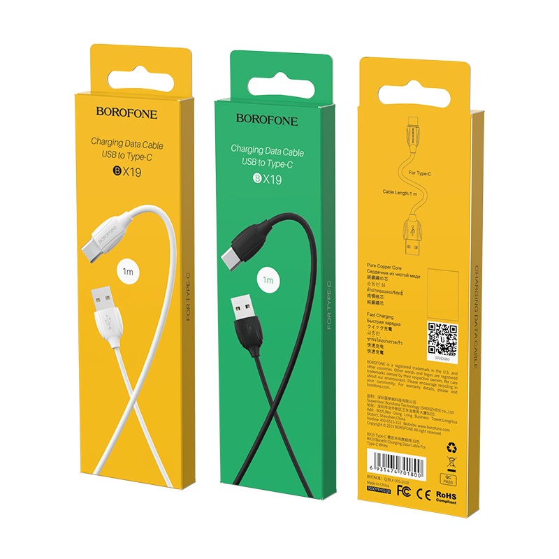 Дата-кабель BOROFONE BX19 Benefit Type-C 1м (белый) (о)