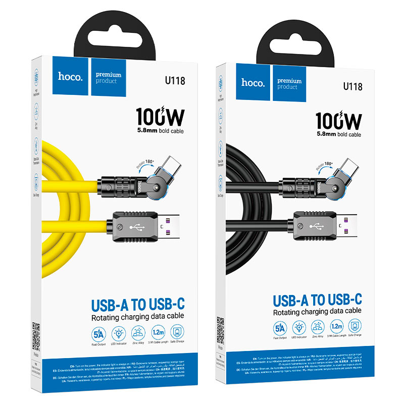 Дата-кабель HOCO U118 Triumph 100W rotating charging Type-C 1,2 м (черный)