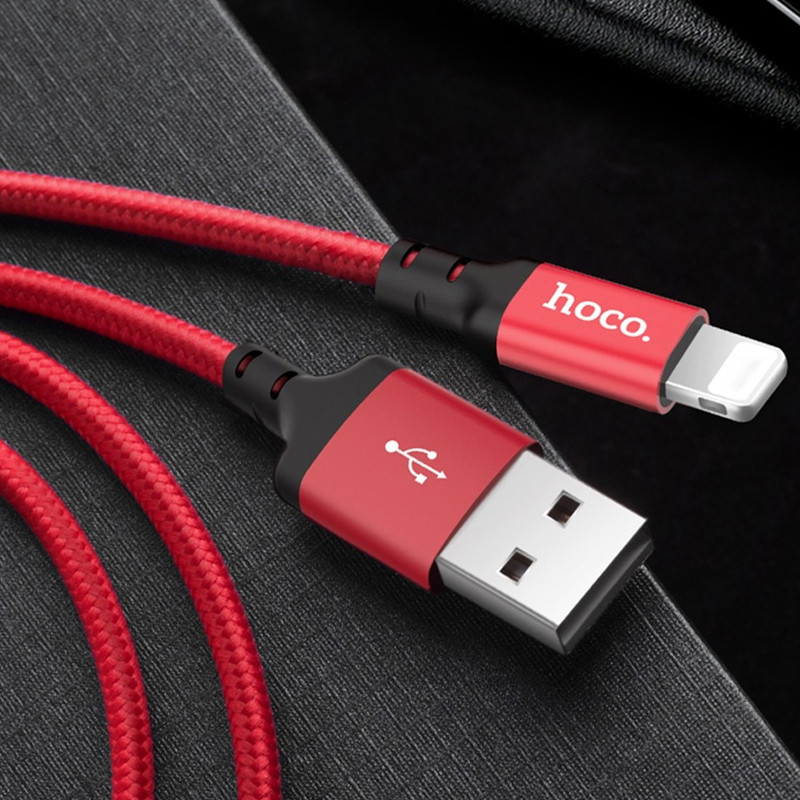 Дата-кабель HOCO X14 lightning 2м (чёрно-красный) (о)