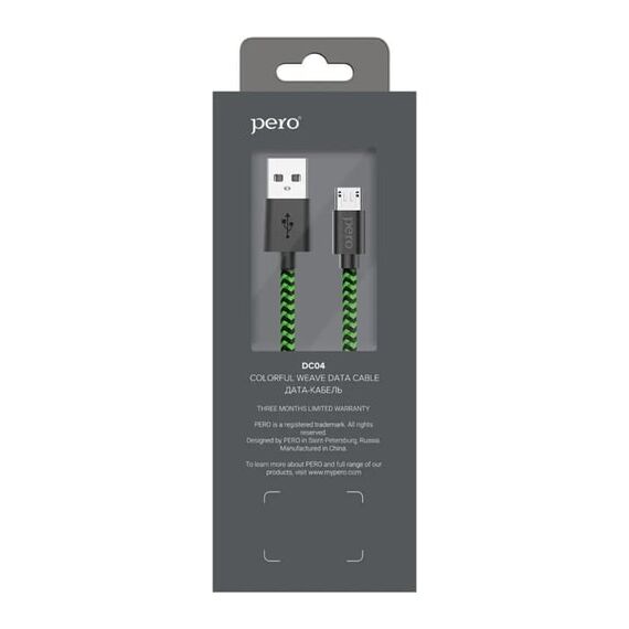 Дата-кабель PERO DC-04 micro-USB, 2А, 1м Green-black