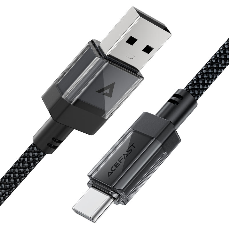 Кабель ACEFAST AF-C12-04-BK USB-A To USB-C Transparent Shell Stainless Steel Charging Data Cable Black