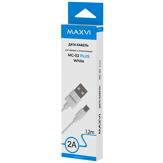 Кабель Maxvi MC-02 plus white USB-A-Type-C, 2A