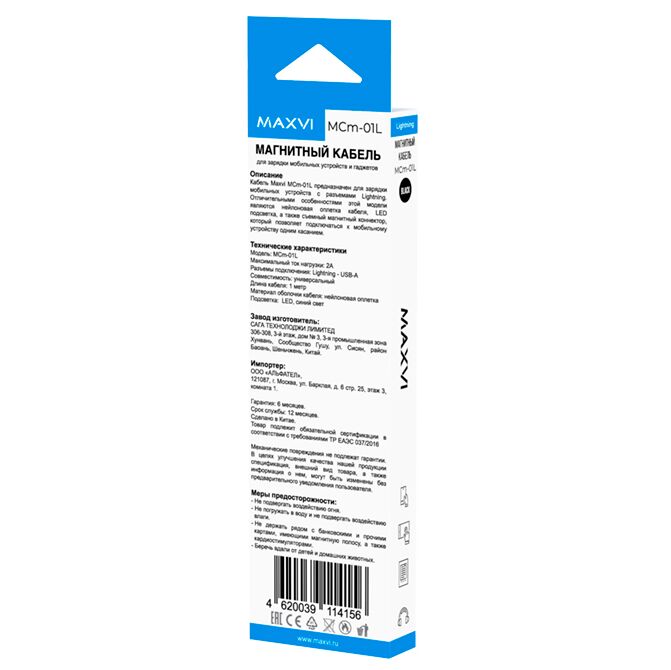 Кабель Maxvi MCm-01L black USB-A-Lightning, 2A
