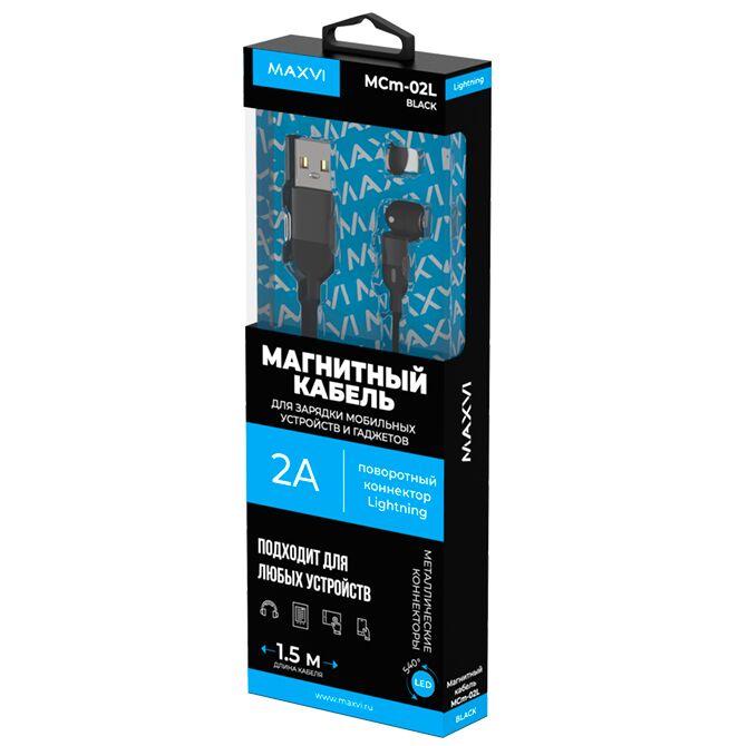 Кабель Maxvi MCm-02L black USB-A-Lightning, 2A