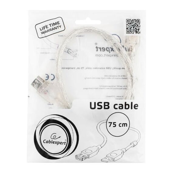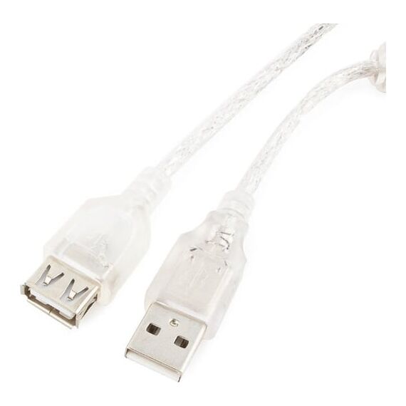 Кабель удлинитель Cablexpert CCF-USB2-AMAF-TR-0.75M USB2.0 Pro, AM/AF, 0,75м, экран, 2 феррит.кольца, прозрачный