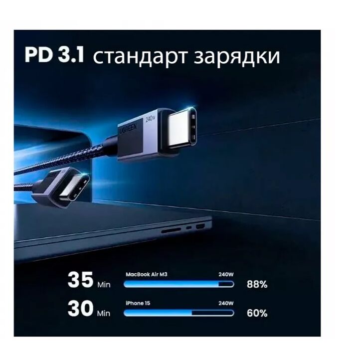 Кабель UGREEN L513 (45068) Type-C 2.0 Male To Type-C 2.0 Male Charging Data Cable (240W Max) 2m Black