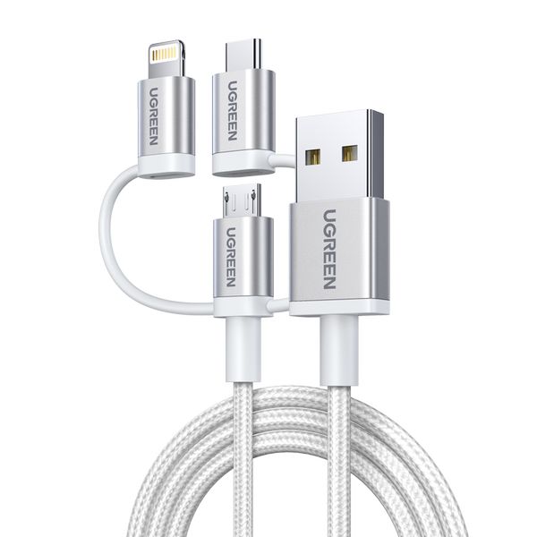 Кабель UGreen US186 (50203) 3-in-1 USB2.0-A Multifuntion Cable with Braid в оплетке 1,5 серебристый