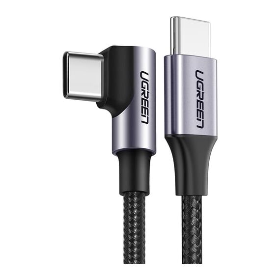 Кабель UGREEN US255 80714 USB-C 2.0 Male to Angled 90° USB-C 2.0 Male 3A Data Cable 3m Gray/Black