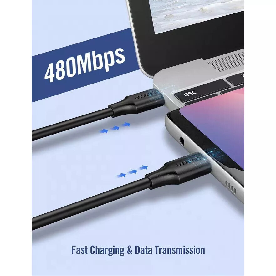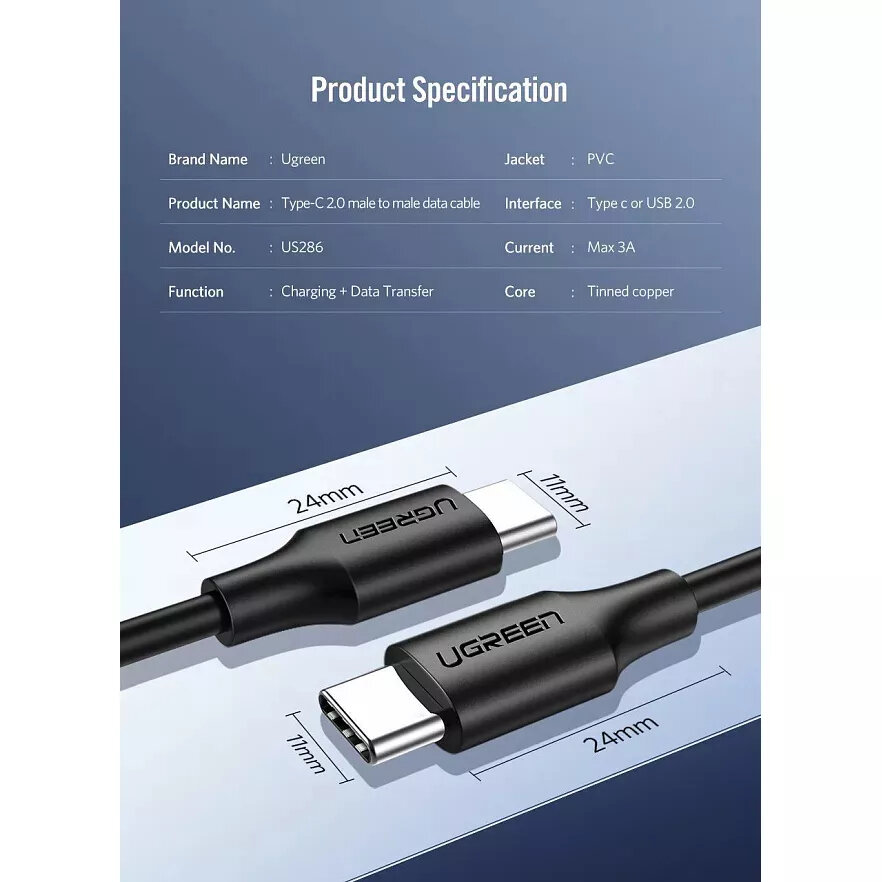 Кабель UGREEN US286 50996 USB-C 2.0 Male To USB-C 2.0 Male 3A Data Cable 0.5m Black