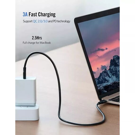 Быстрая зарядка и передача данных: поддержка QC2.0/QC3.0/QC4.0 и технологии Power Delivery (Полная зарядка MacBook за 2,5ч., Xiaomi 6 за 1,5 часа). Также данный кабель гарантирует передачу данных со скоростью до 480 Мбит/с