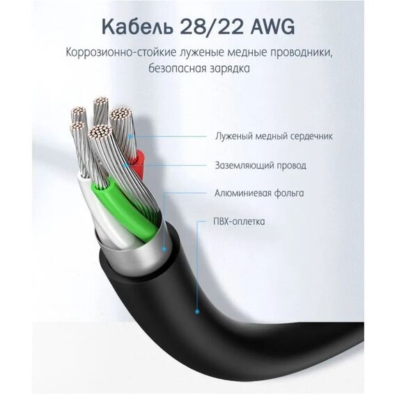Кабель UGREEN US287 60119 USB-A 2.0 to USB-C Cable Nickel Plating 0.25m White