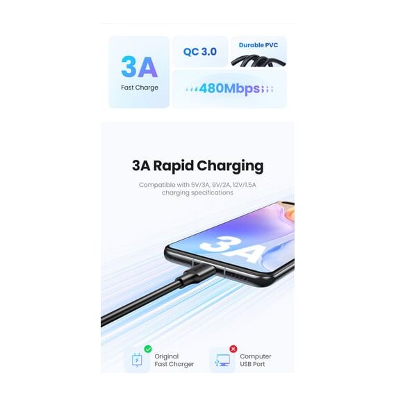 Кабель UGREEN US287 60826 USB 2.0 to USB-C date cable 3m Black