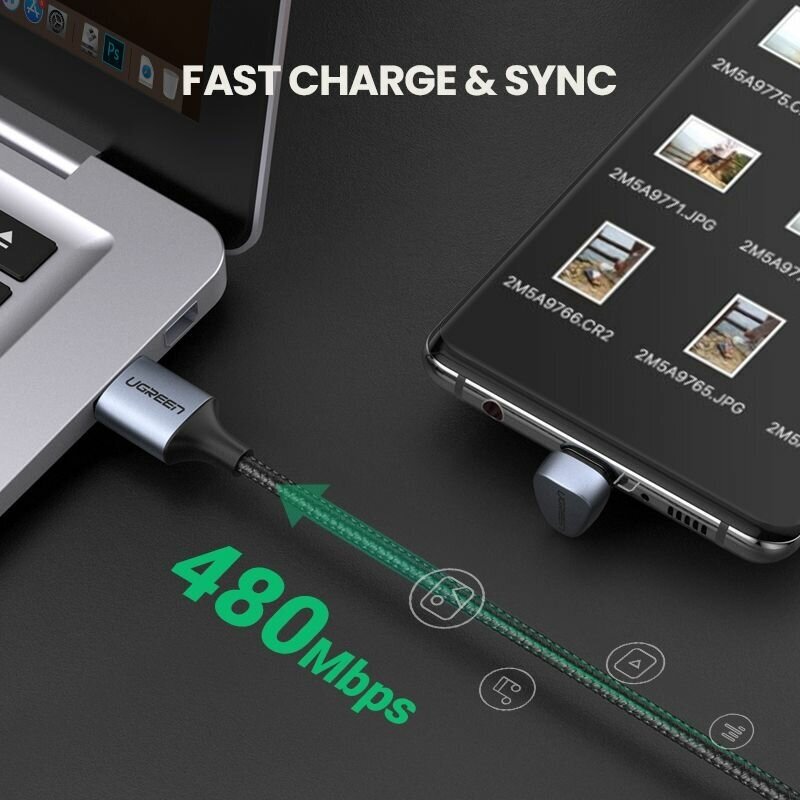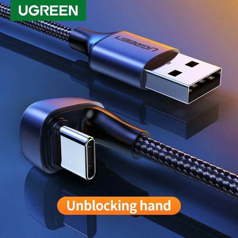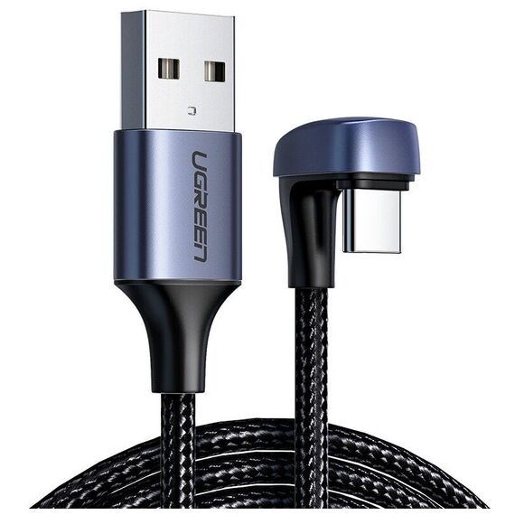 Кабель UGREEN US311 70313 USB 2.0-A to Angled USB-C Cable Aluminum Case with Braided 1m Black