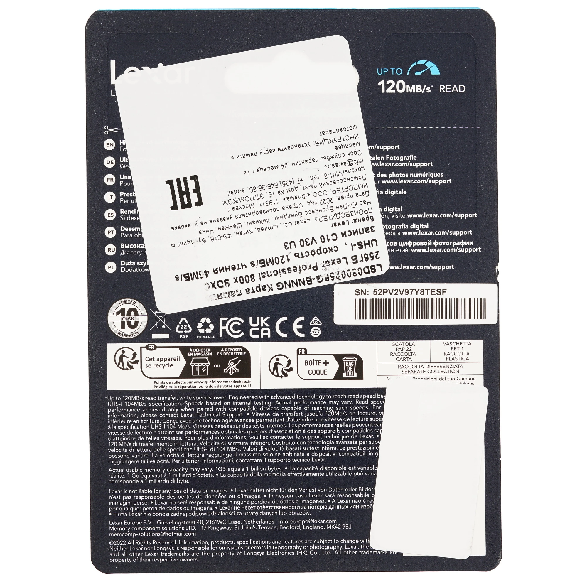 Карта памяти Lexar Professional 800x Pro (LSD0800P256G-BNNNG) 256GB SDXC UHS-I U3 V30 C10, 150/45 Mb/s
