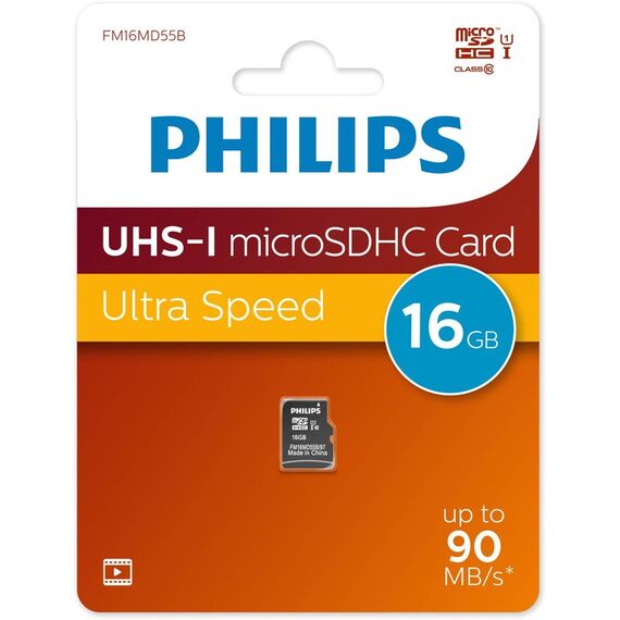 Карта памяти PHILIPS FM16MD55B/97 16GB High Speed microSDHC Class 10 90MB/s