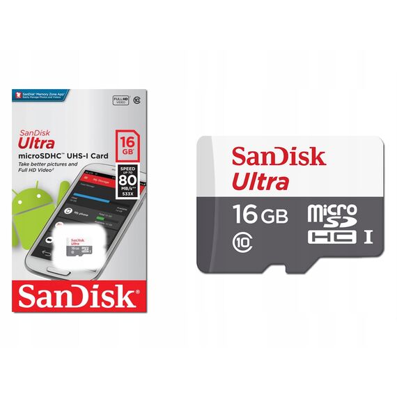 Карта памяти Sandisk microSDHC 16Gb Class10 SDSQUNS-016G-GN3MN Ultra 80 w/o adapter