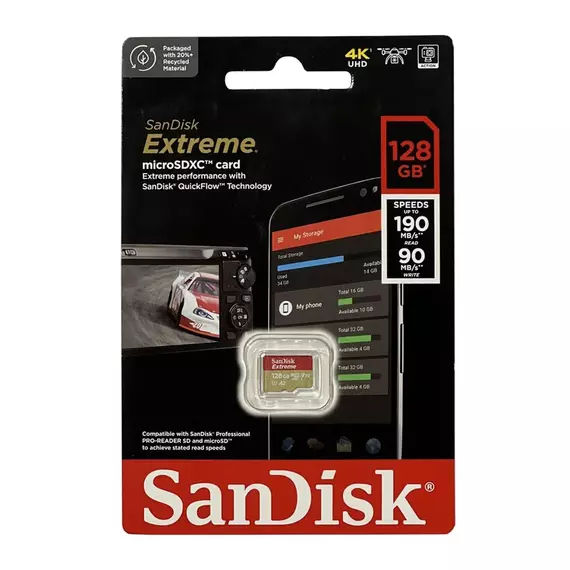 Карта памяти SanDisk (SDSQXAA-128G-GN6MN) 128GB microSDXC Class 10 UHS-I A2 C10 V30 U3 Extreme 190MB/s