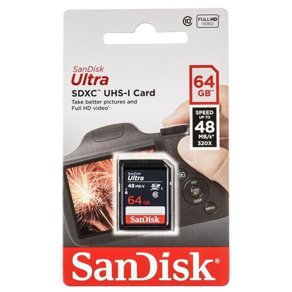 Карта памяти SanDisk SDXC 64GB Class 10 UHS-I Ultra 48MB/s (SDSDUNB-064G-GN3IN)