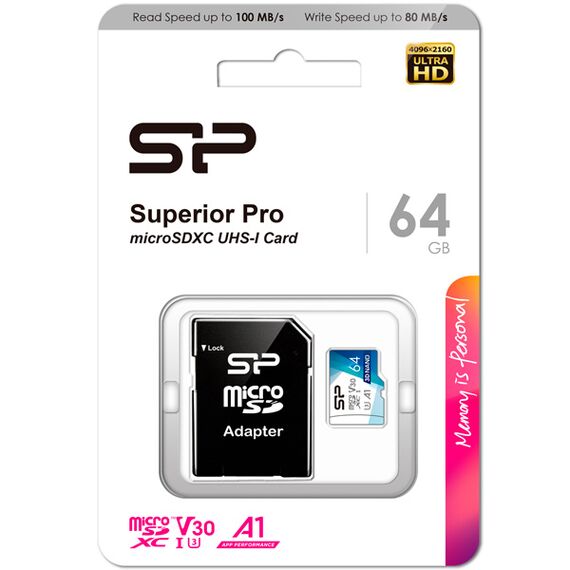 Карта памяти Silicon Power SP064GBSTXDU3V20AB microSDXC 64Gb Class10 Superior Pro Colorful + adapter