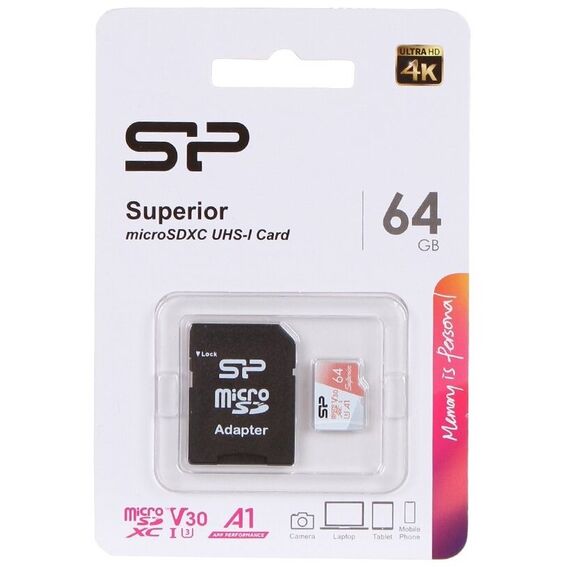 Карта памяти Silicon Power Superior (SP064GBSTXDV3V20SP) 64GB A1 microSDXC Class 10 UHS-I U3 100/80 Mb/s (SD адаптер)