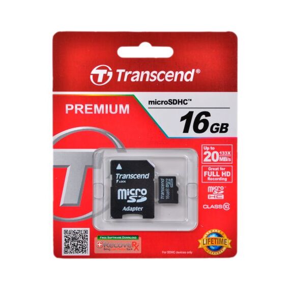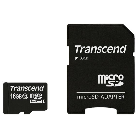 Карта памяти Transcend TS16GUSDHC10 micro SDHC 16GB UHS-I Class 10 U1 с адаптером