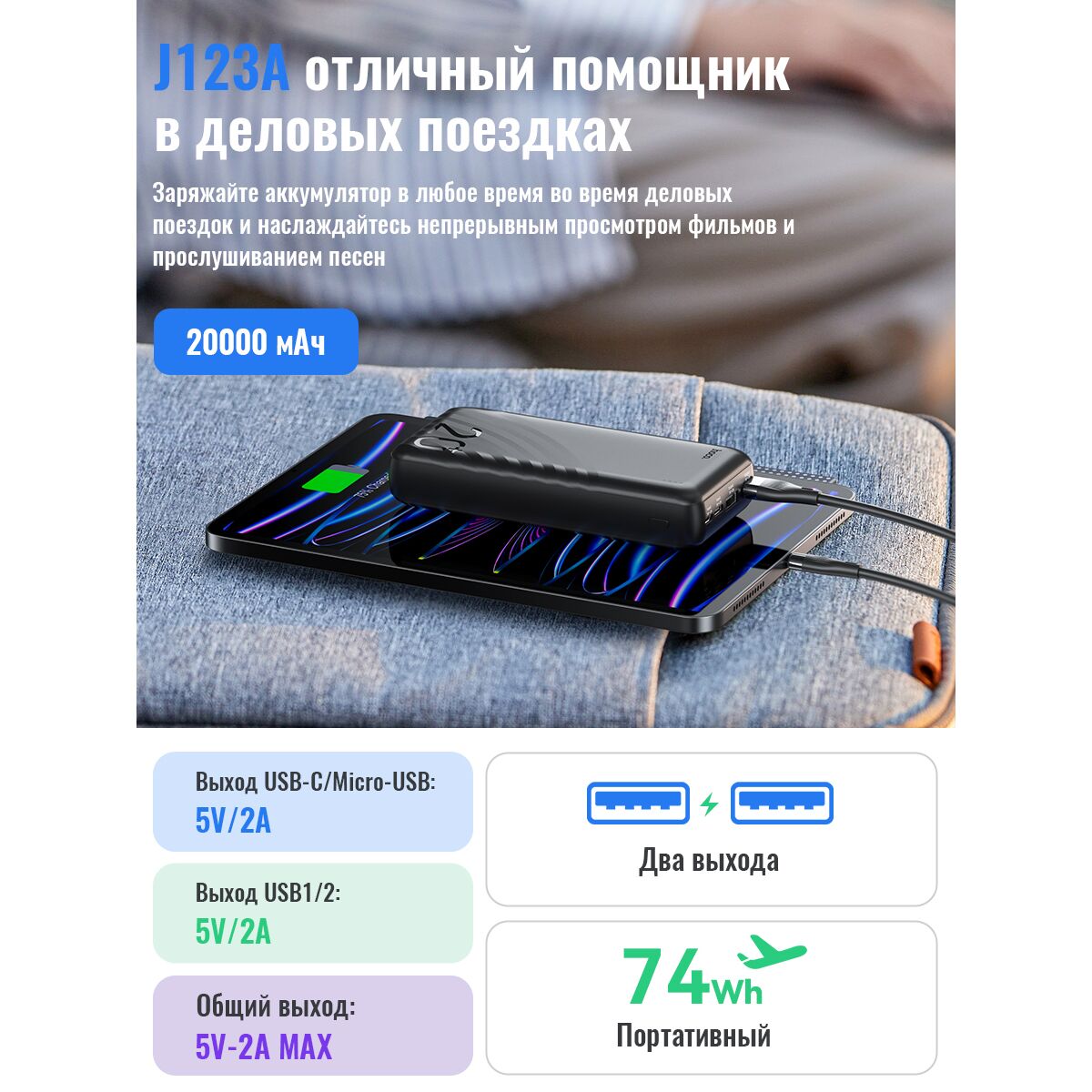 Аккумулятор внешний резервный HOCO J123A Element power bank 20000mAh черный