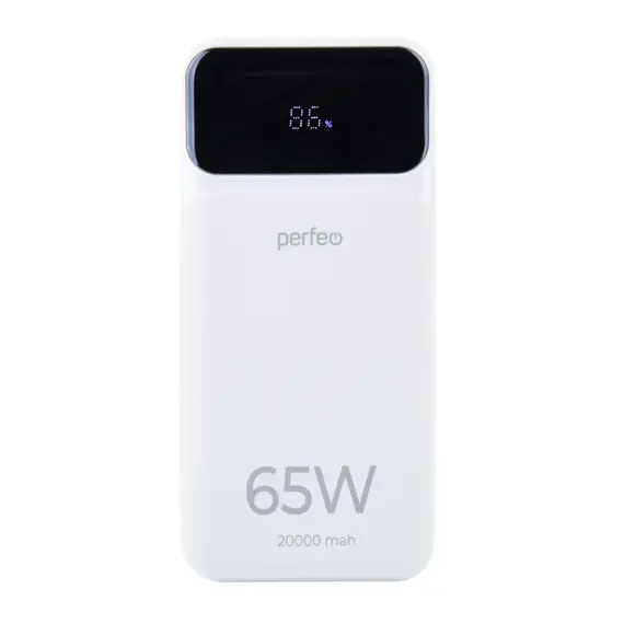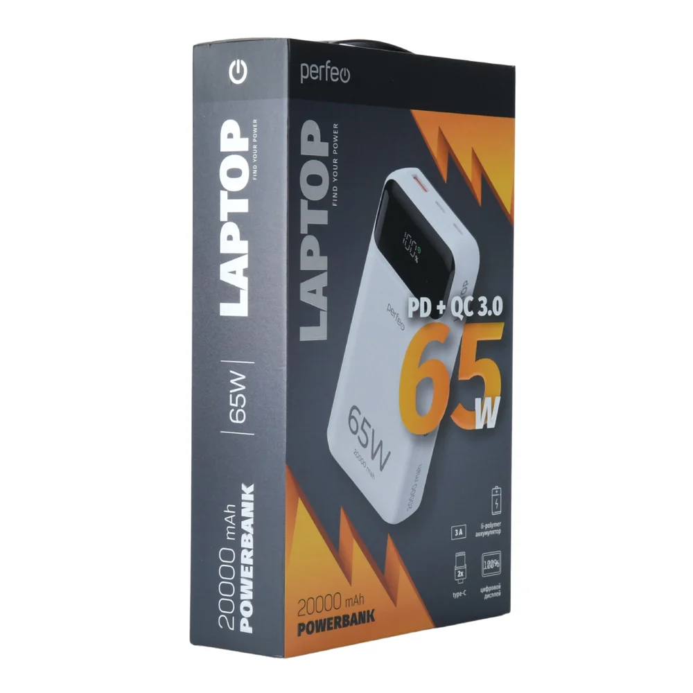 Powerbank Perfeo PF_E1637 Laptop 65W 20000mAh LED дисплей PD+QC 3.0 2Type-C 1 USB, max 65W White