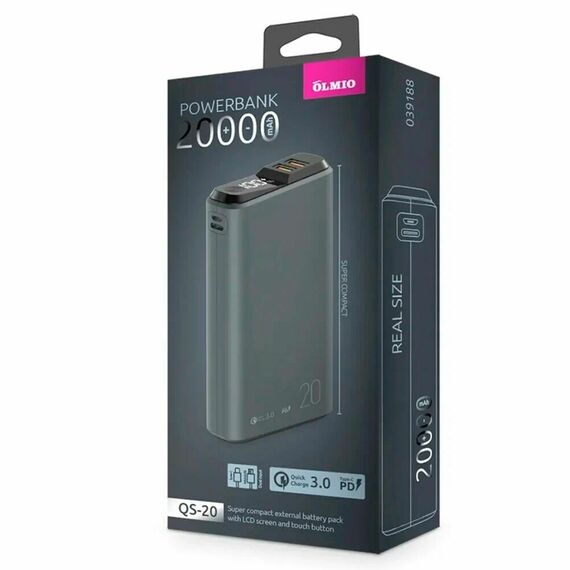 Портативный аккумулятор Powerbank 20000мА серый QS-20 OLMIO Упаковка